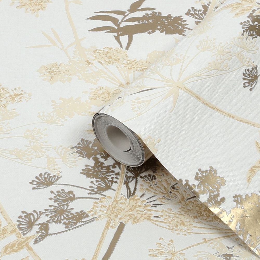 Meadow Floral Cream & Metallic Gold Superfresco Wallpaper 128157