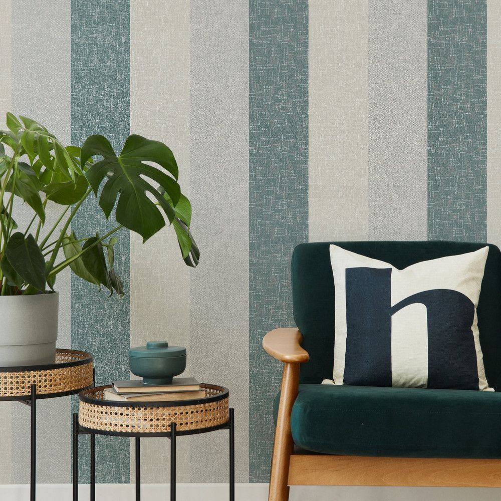 Calculate QuantityThis elegant textured fabric-effect stripe design is a timeless addition to your home. With layered textures and metallic highlights, it adds beautiful depth to your walls and pairs seamlessly with our Meadow florals or Midas plains for a coordinated look. The neutral and contrasting teal tones with rose gold metallic accents in Meadow Stripe Teal/Rose Gold create a warm, cozy feel. Easy to hang and washable, Super Fresco Colours wallcoverings are both stylish and durable.
