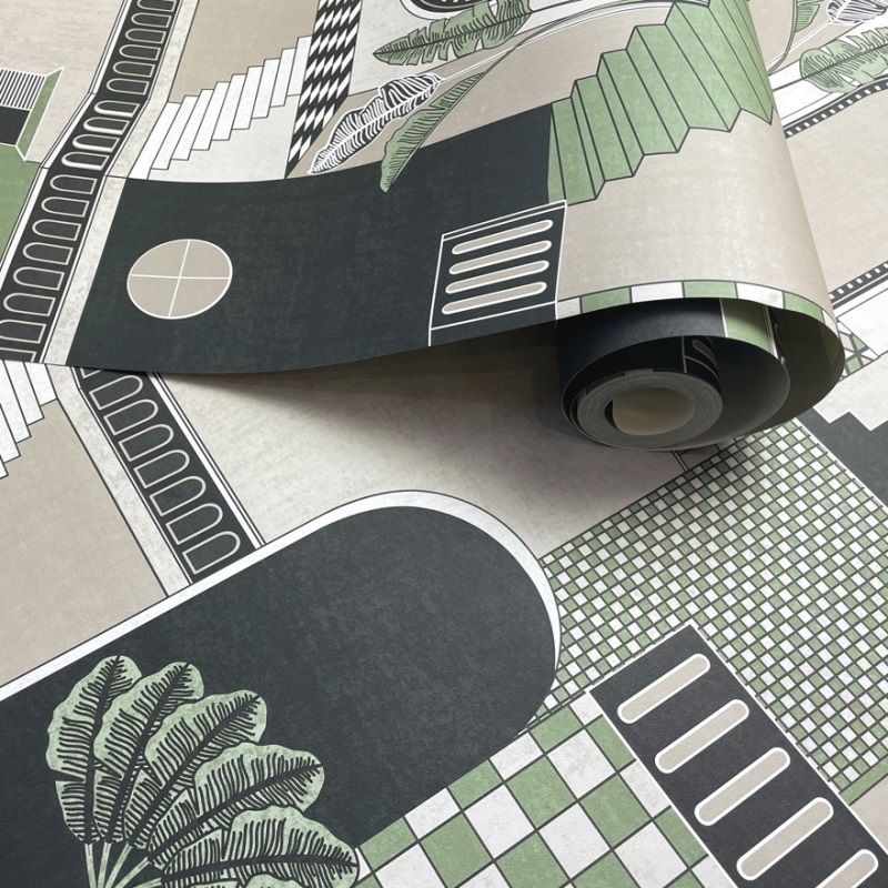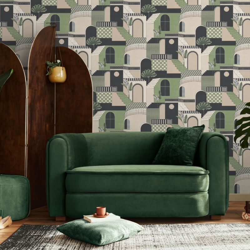 Medina Mediterranean Green Conversational Wallpaper 13100