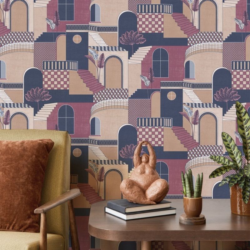 Medina Mediterranean Red/Navy Conversational Wallpaper 13103