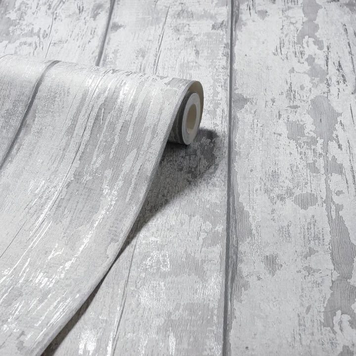 Calculate QuantityIdeal for introducing a natural look to your walls effortlessly, this pale grey washed wood wallpaper with silver metallic highlights will also ensure the sense of space is maximised. A great look for homes of all styles, including rustic country cottages and contemporary spaces. Hang this paper on a feature wall, chimney breast or throughout a room to get the look you're after. Ideal for a kitchen, garden room, dining room or hallway. Suitable for most rooms except high moisture environments, like bathrooms.