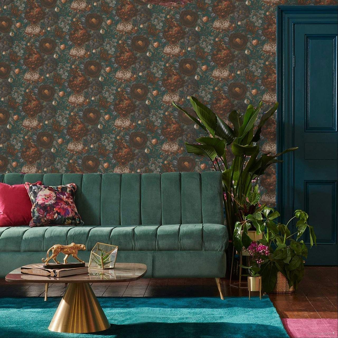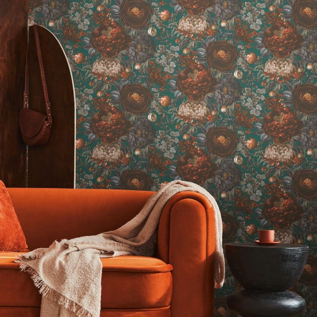 Michalsky Large Floral Orange & Green Non-Woven Wallpaper 39979-3
