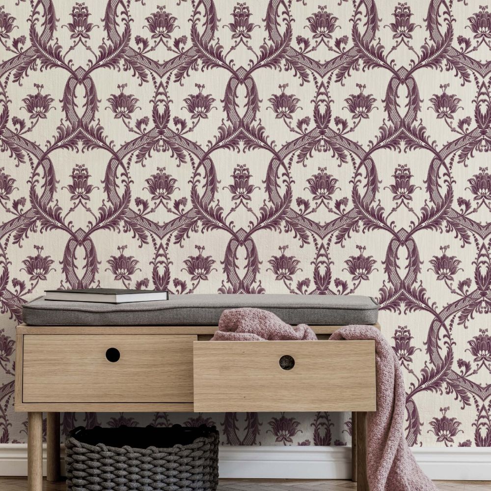 Milano 7 Purple Damask Heavyweight Italian Vinyl Wallpaper M95626