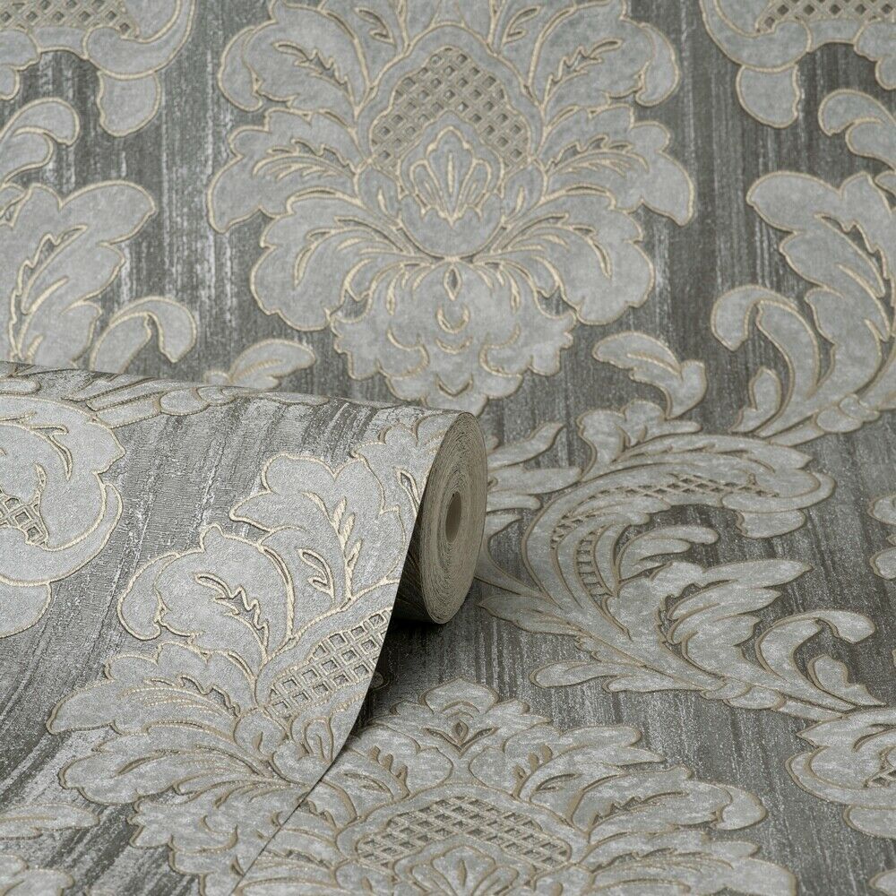 Milano Damask Grey Heavyweight Italian Vinyl Wallpaper M95623