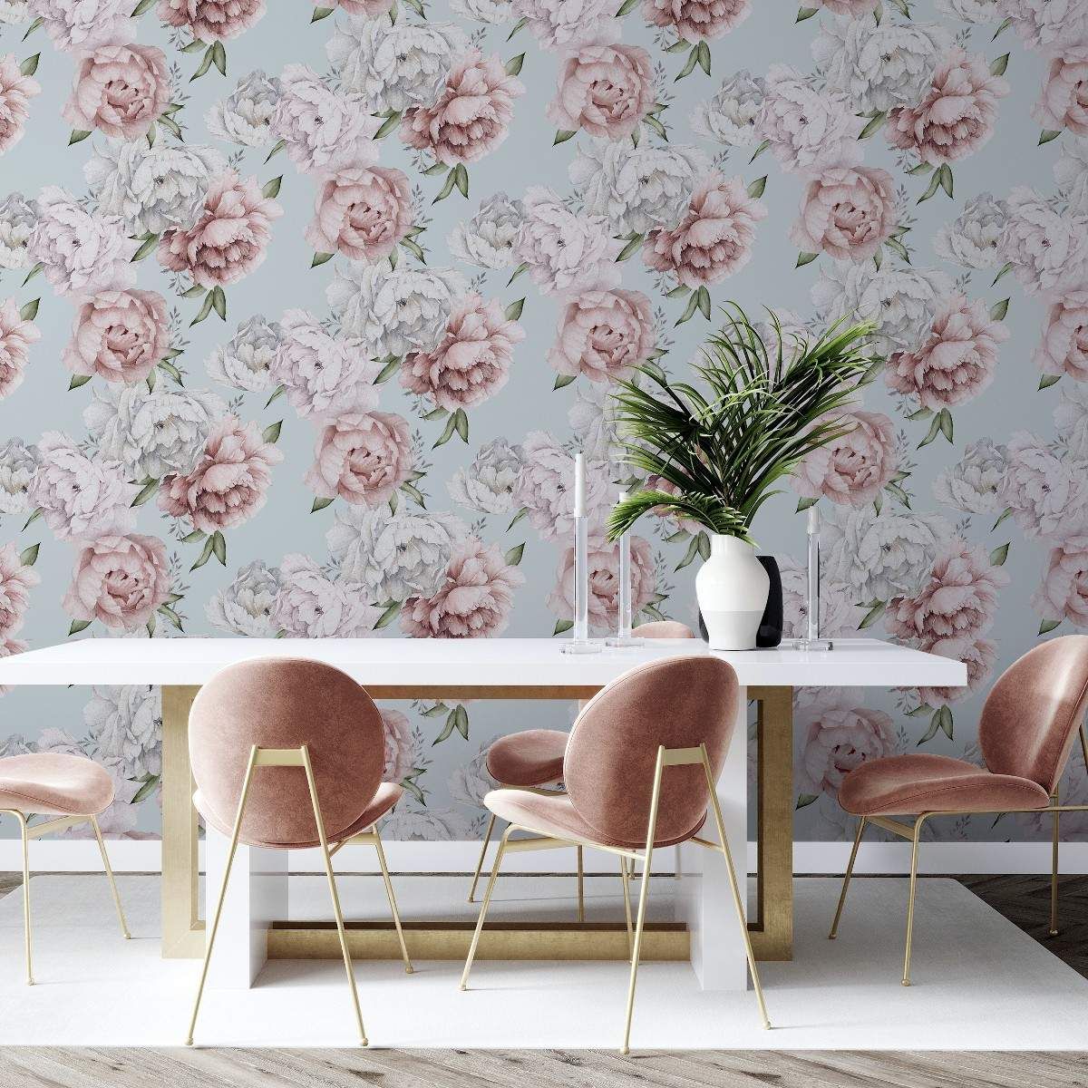 Mixed Peonies Mint & Pink Floral Wallpaper 251908