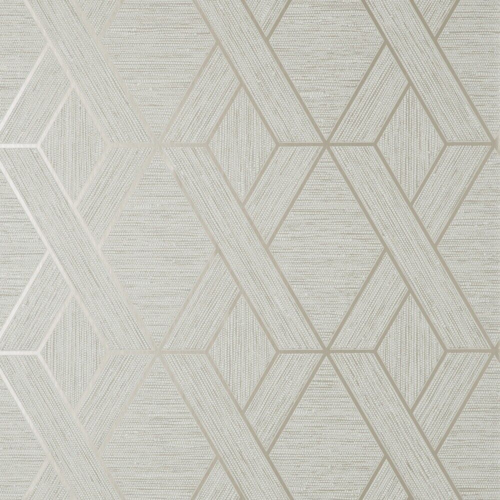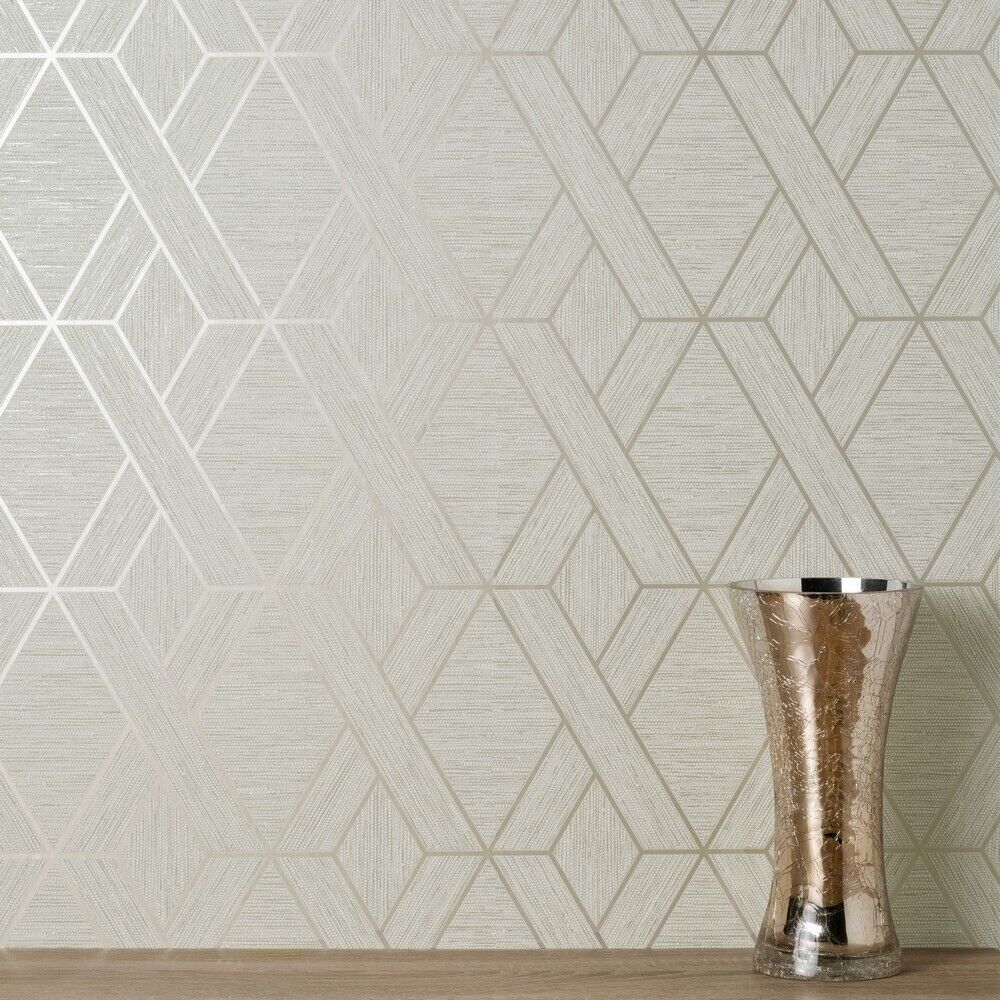 The embossed dots and metallic line in the Fine Decor Miya Geo's diamond pattern harmoniously contrast with the beige background. This exquisite design wallpaper exudes quality and style.