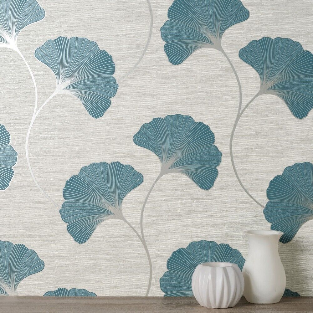 Miya Gingko Teal Textured Vinyl Wallpaper FD43151
