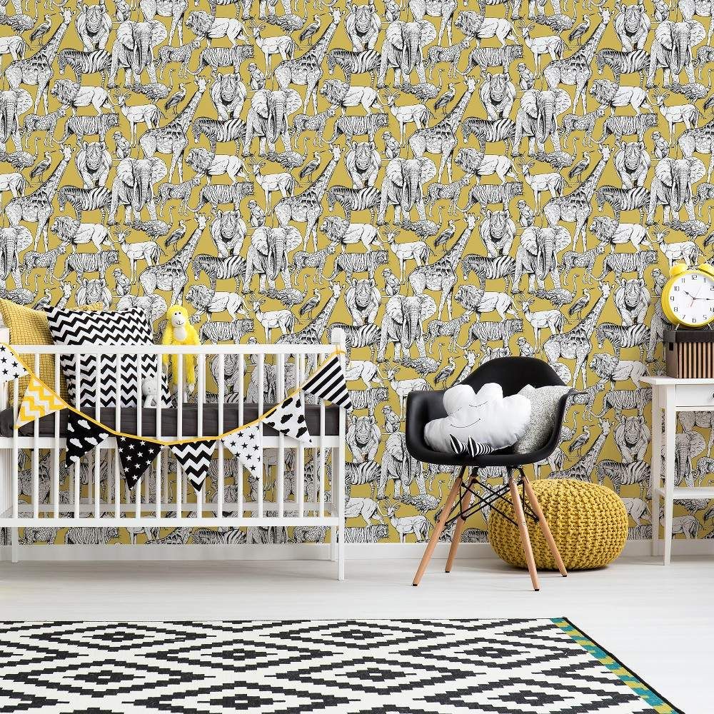 Calculate QuantityJungle Animals draws inspiration from the wild safari and features a sketch-style image of a broad assortment of species, both grand and small. This unusual pattern, including elephants, giraffes, monkeys, and rhinos, makes a bold statement in any setting. The colour palette is unabashedly trend-driven, with a mix of mustard yellow and meticulously detailed white creatures, heightening the overall impact of this gorgeous and distinctive artwork.