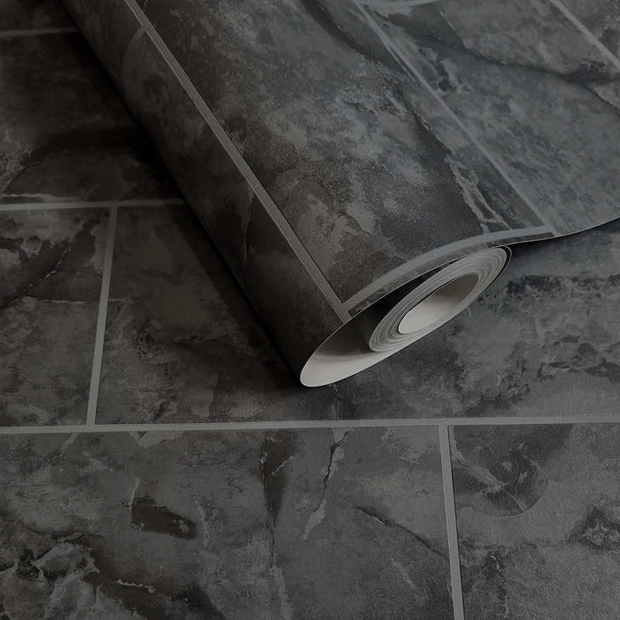 Odeon Tile Charcoal Kitchen & Bathroom Vinyl Wallpaper 89390