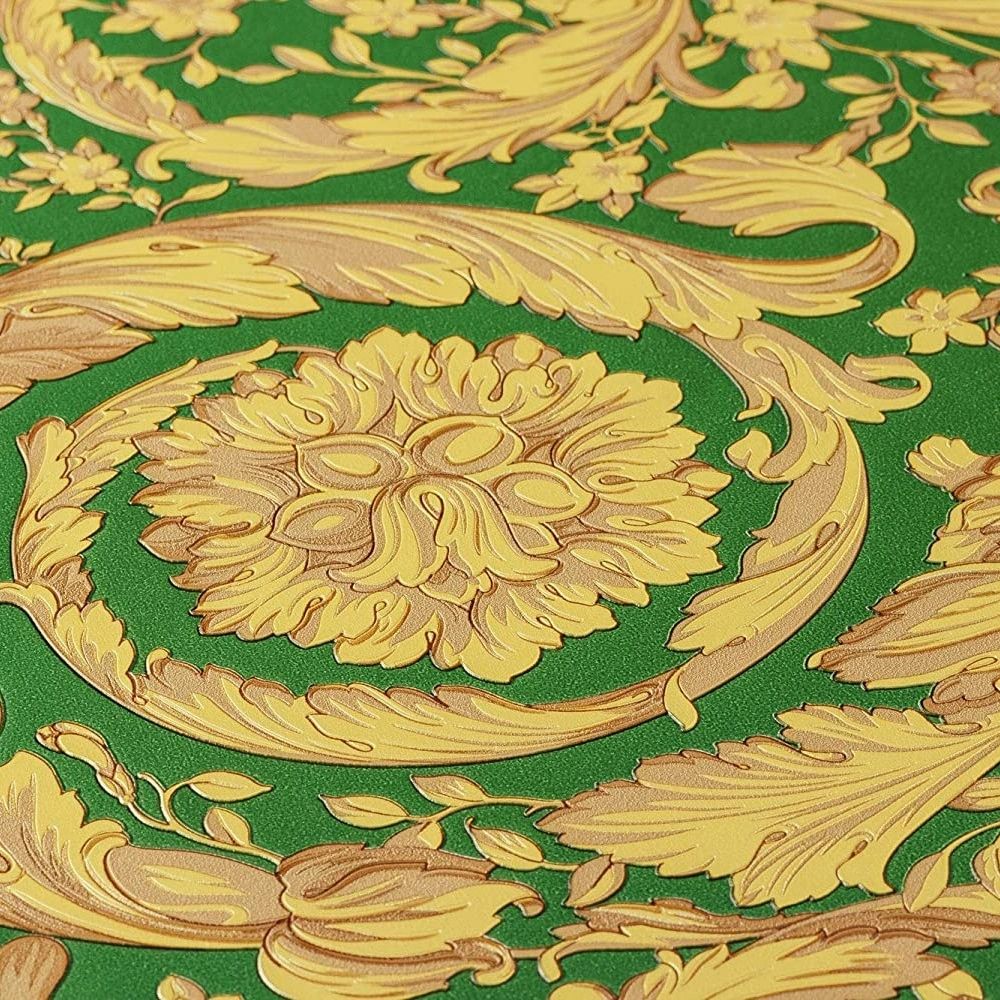 Oriental Barocco Green & Gold Luxury Vinyl Wallpaper 366926