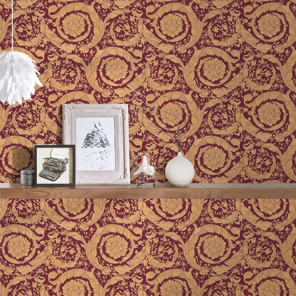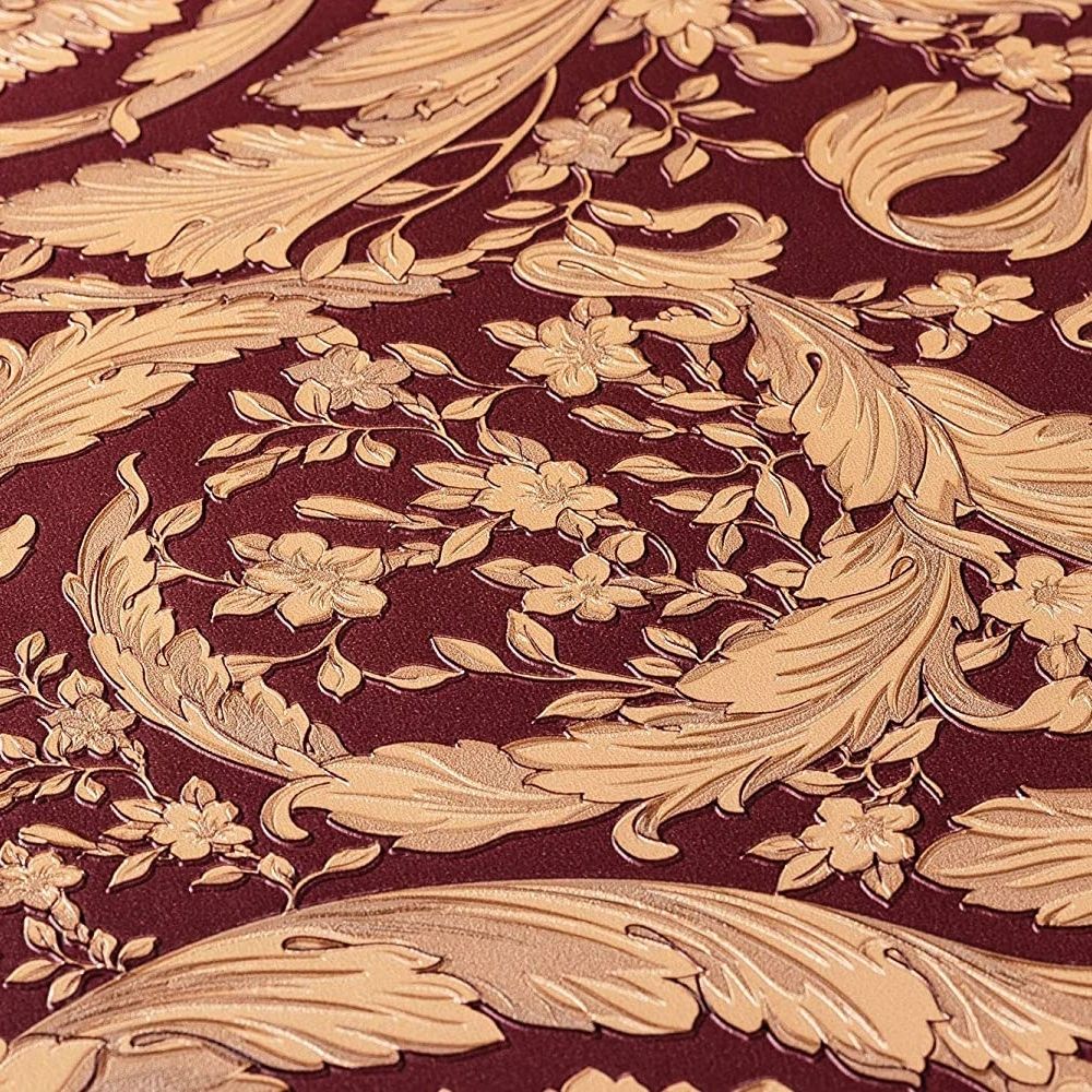 Oriental Barocco Maroon Luxury Vinyl Wallpaper 366927