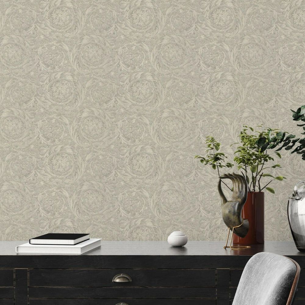 Oriental Barocco Metallic Champagne Luxury Vinyl Wallpaper 366921
