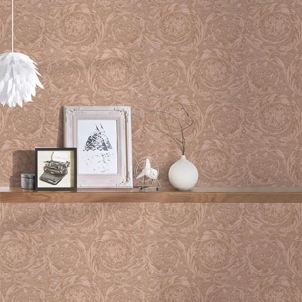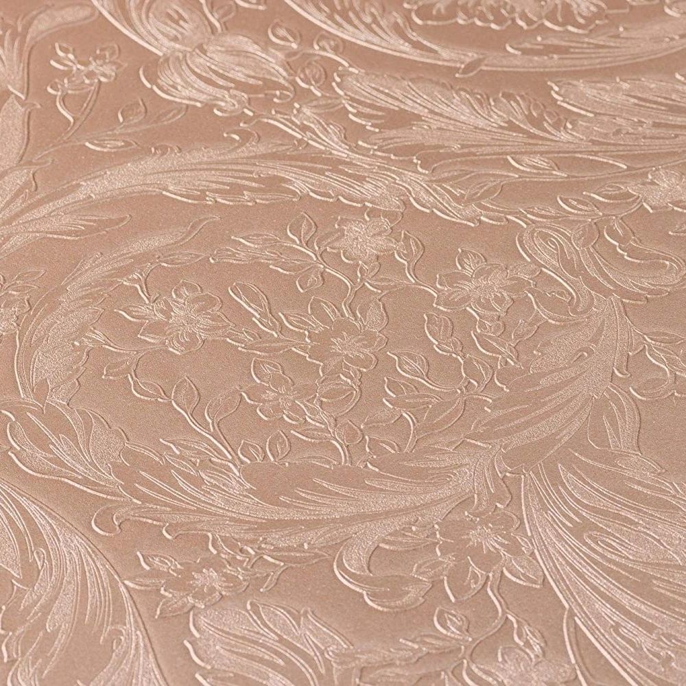 Oriental Barocco Metallic Rose Gold Luxury Vinyl Wallpaper 366922