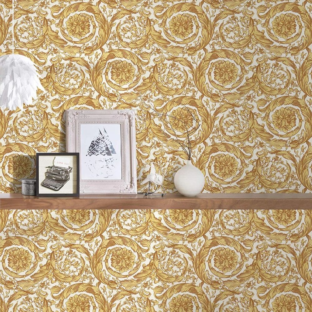 Calculate QuantityThis wallpaper features an all-over motif boasting Baroque flowers and leaves in a gold-tone with a modern, sleek effect. Part of the classical Oriental Barocco wallpaper line, this design boasts the iconic print from the Fall-Winter 1991 collection.*This is a special order item and cannot be returned. We highly recommend you order a sample before purchasing this wallpaper.