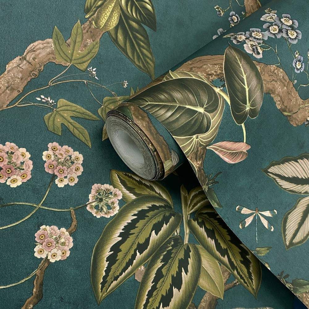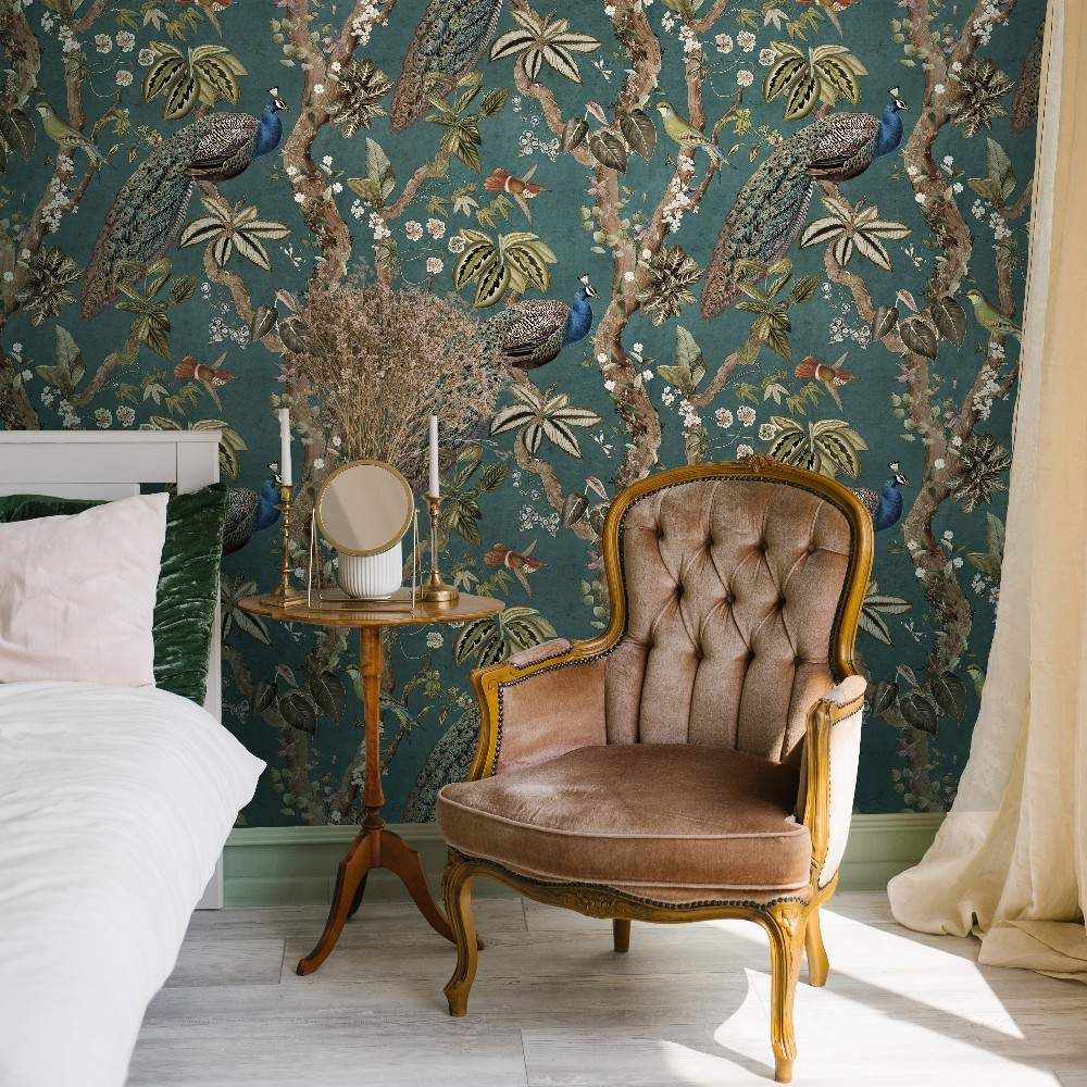 Peacock Woods Aqua Teal Birds Whispering Wilderness Collection Wallpaper 13682