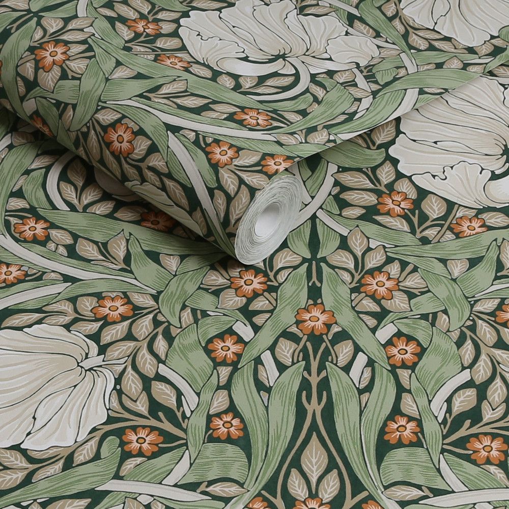 Pimpernel Scrolling Floral Green Wallpaper by William Morris 124242