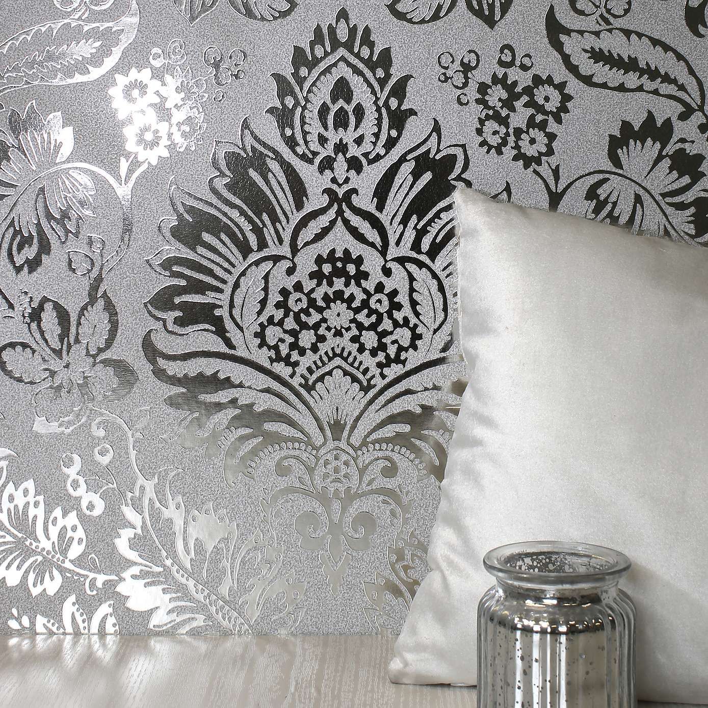 Platinum Damask Silver Foil Vinyl Wallpaper FD42562