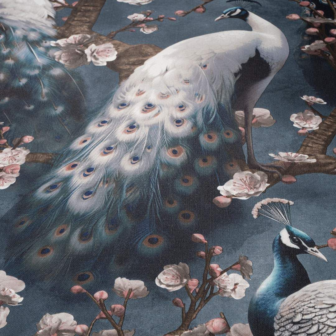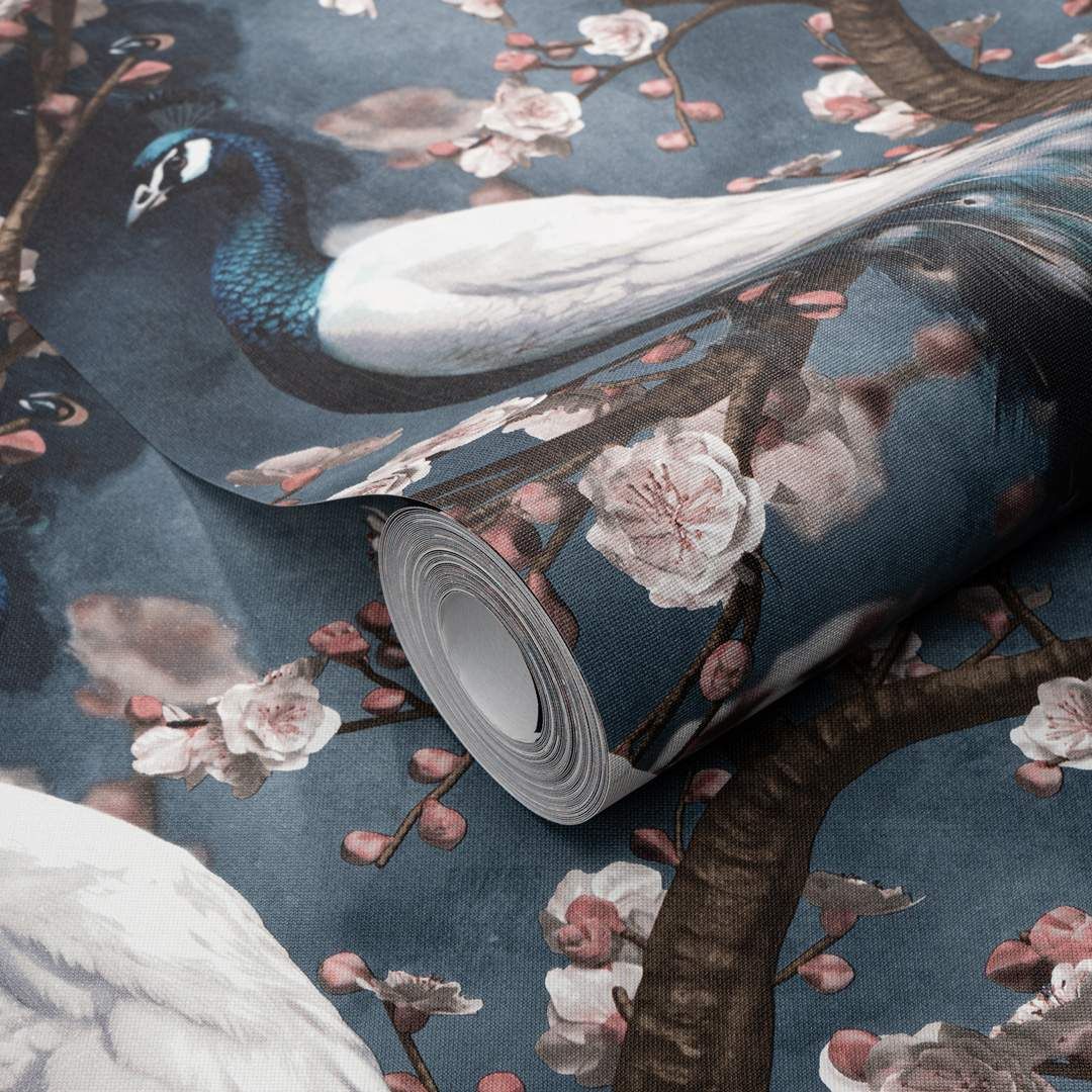 Play of Light Peacocks Navy Blue Vinyl Wallpaper 10414-08