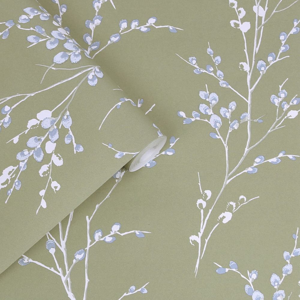 Pussy Willow Moss Green Laura Ashley Wallpaper 121074