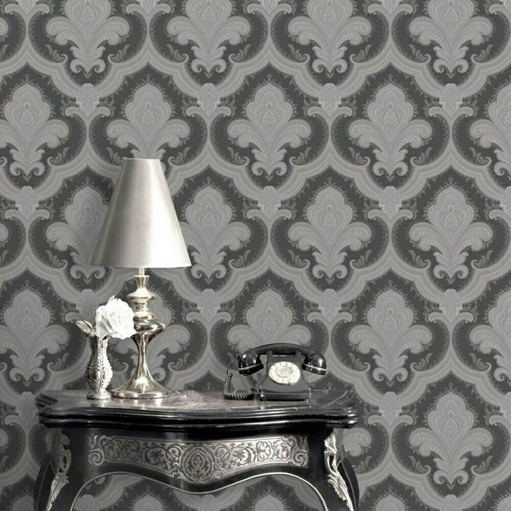 Calculate QuantityThis beautiful Sassari Damask Wallpaper features a slick vintage theme. Heavyweight textured vinyl wallpaper Perfect for feature walls and entire rooms, the design features a classic damask pattern with subtle metallic embellishments for added depth. Available in other colours.