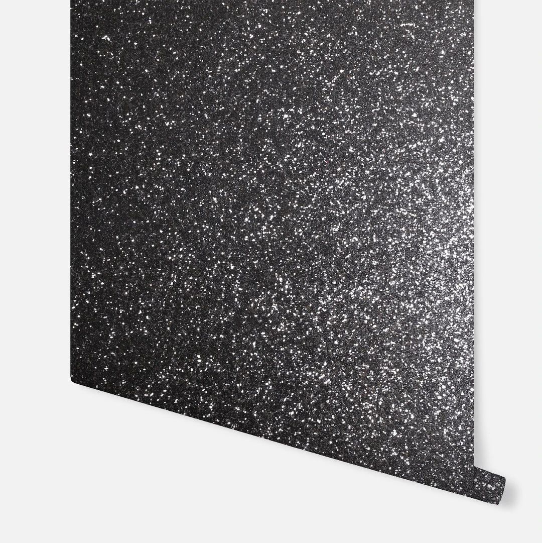 Calculate QuantitySparkly and shimmering, this sequin finish wallpaper in black will bring maximum glitz to any space. Team it with painted walls, a striking patterned paper or even throughout a room for a fabulous effect. It really is a paper designed to turn heads. With a textured metallic finish, light subtlety bounces off in every direction, for glamour by day and by night. Hang it in a walk-in wardrobe, cloakroom or feature wall for instant luxury. Suitable for most rooms except high moisture environments. The size of this roll is 6m. x 0.53m.