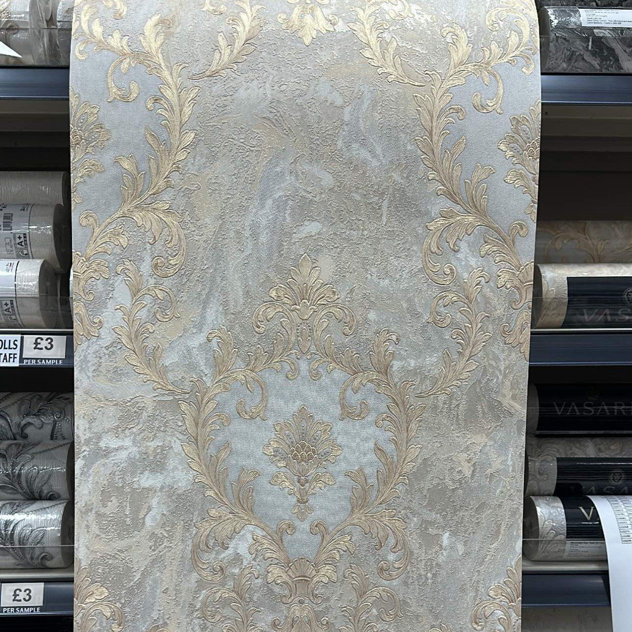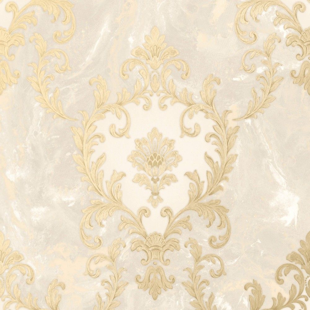 Sienna Damask Beige Vasari Italian Luxury Vinyl Wallpaper 534368