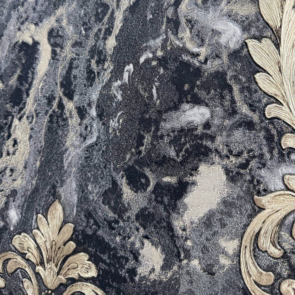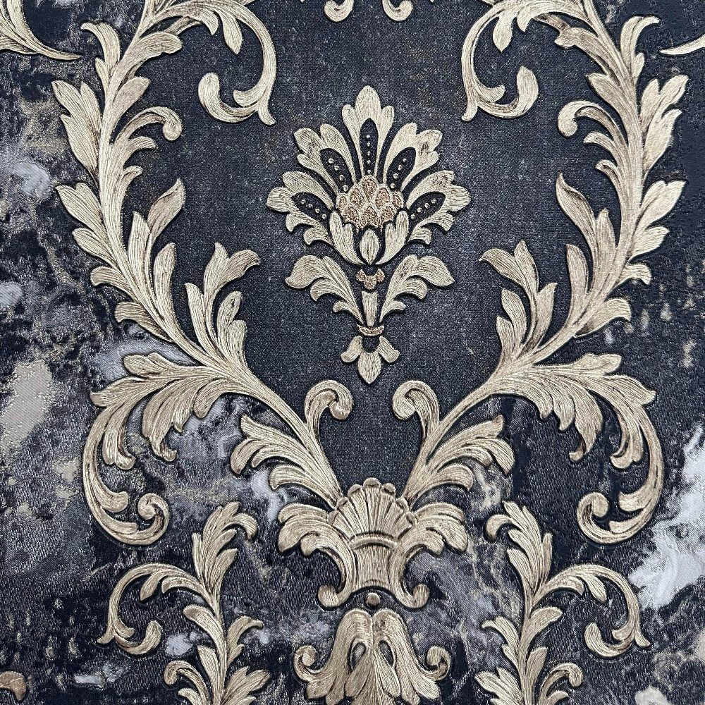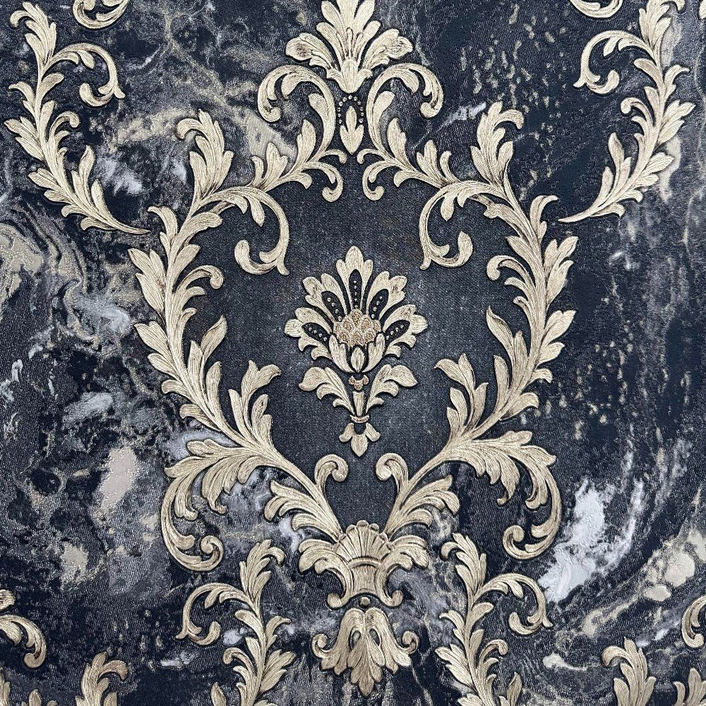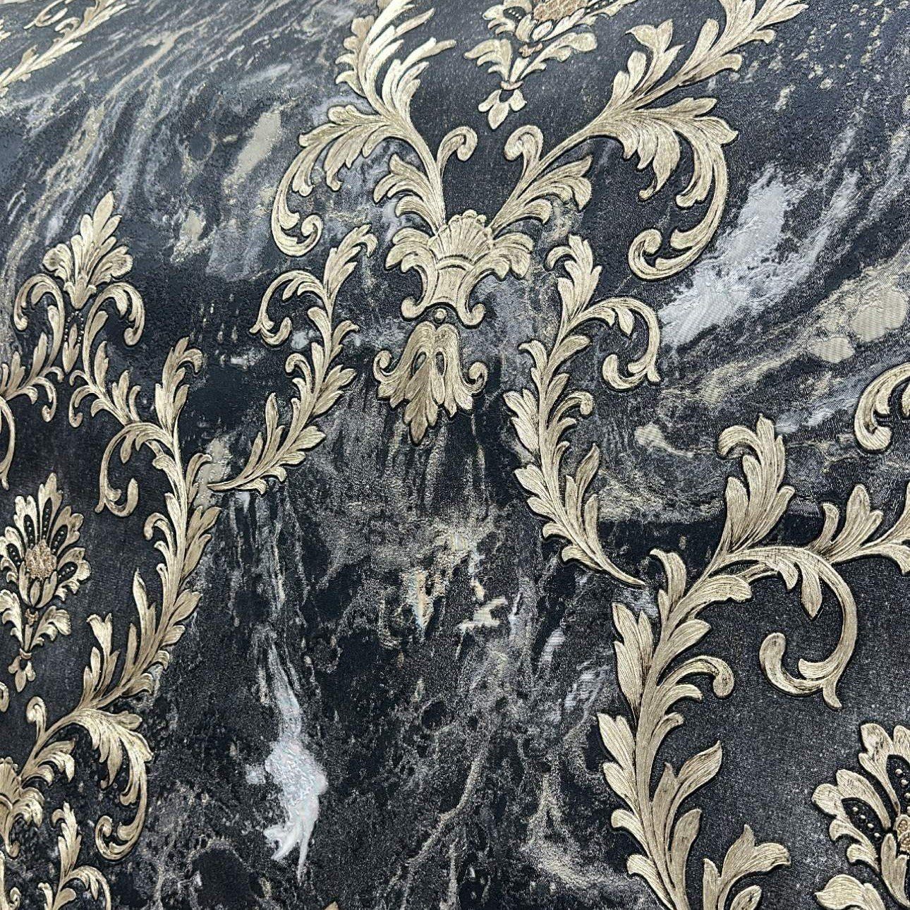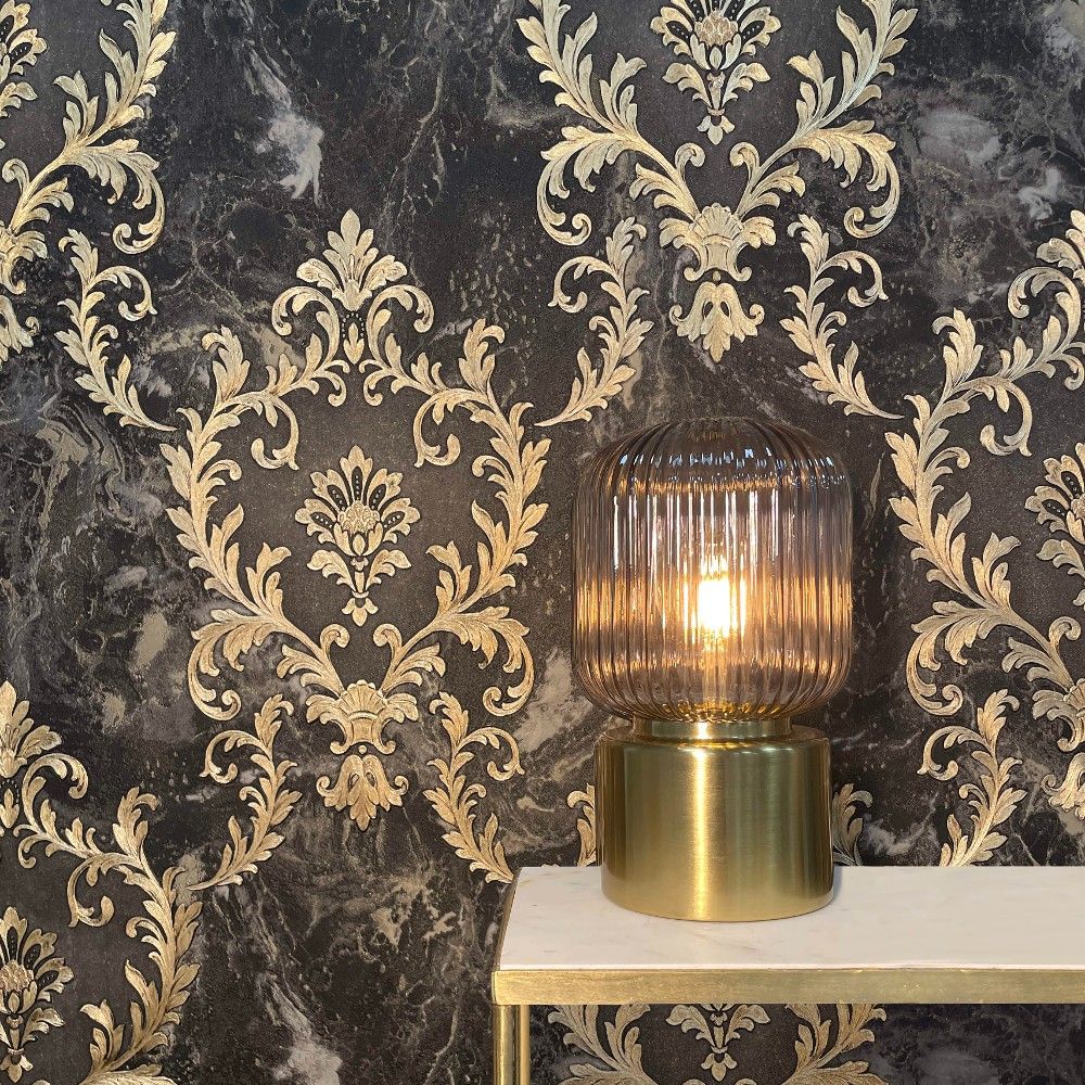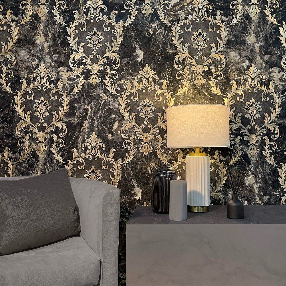 Sienna Damask Black & Gold Vasari Italian Luxury Vinyl Wallpaper 534382