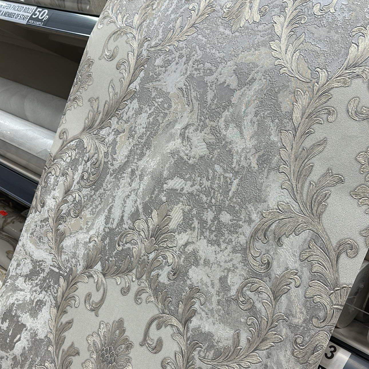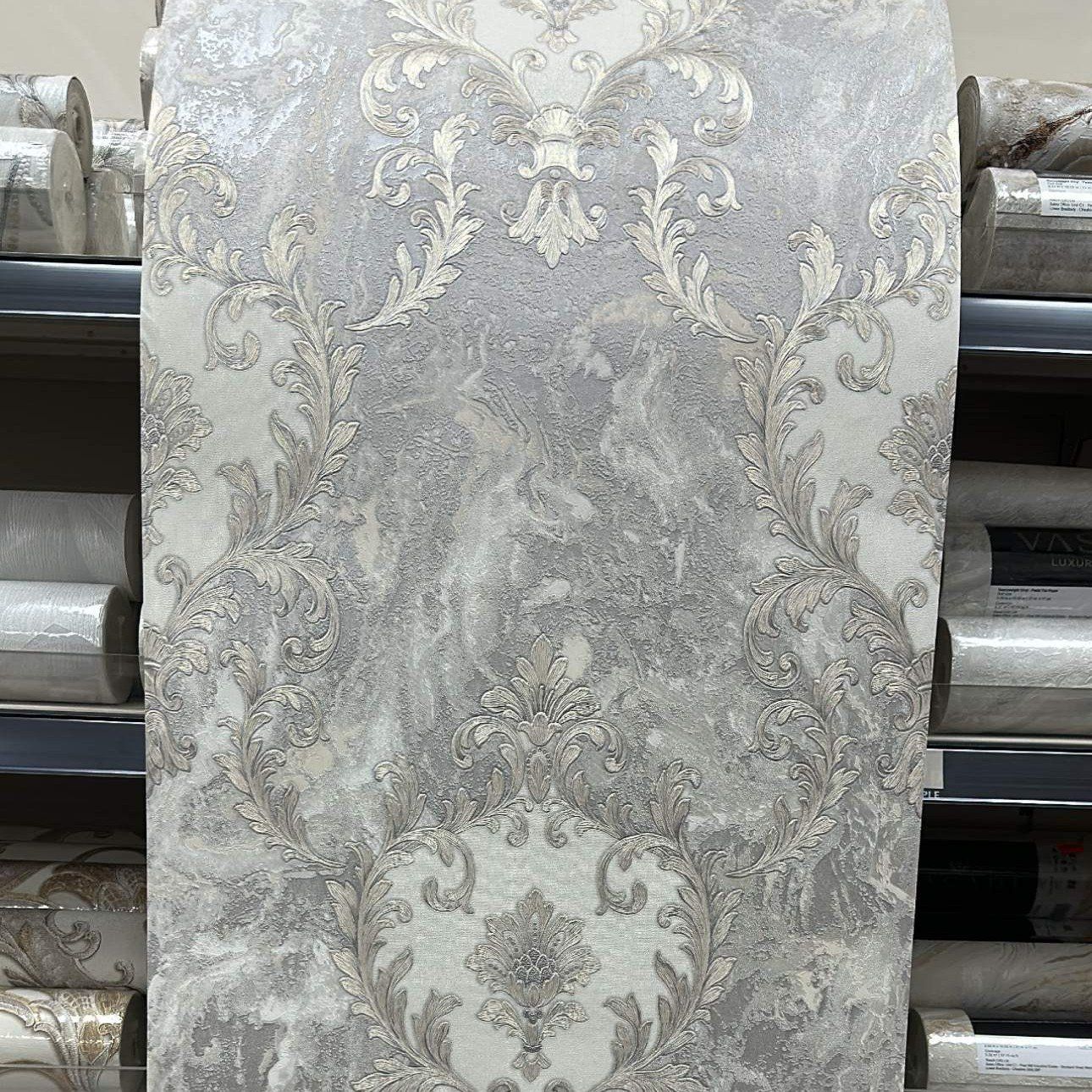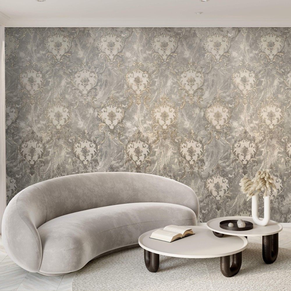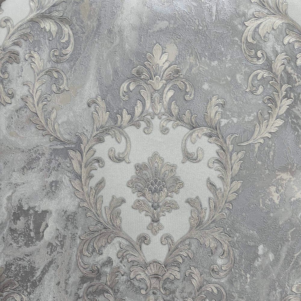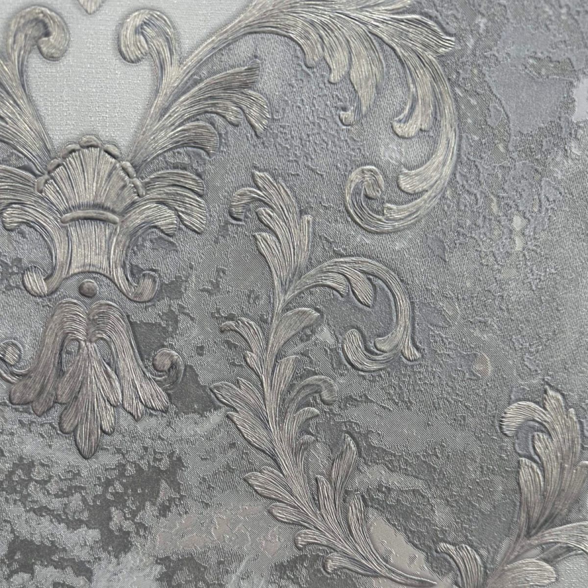Sienna Damask Grey Vasari Italian Luxury Vinyl Wallpaper 534351