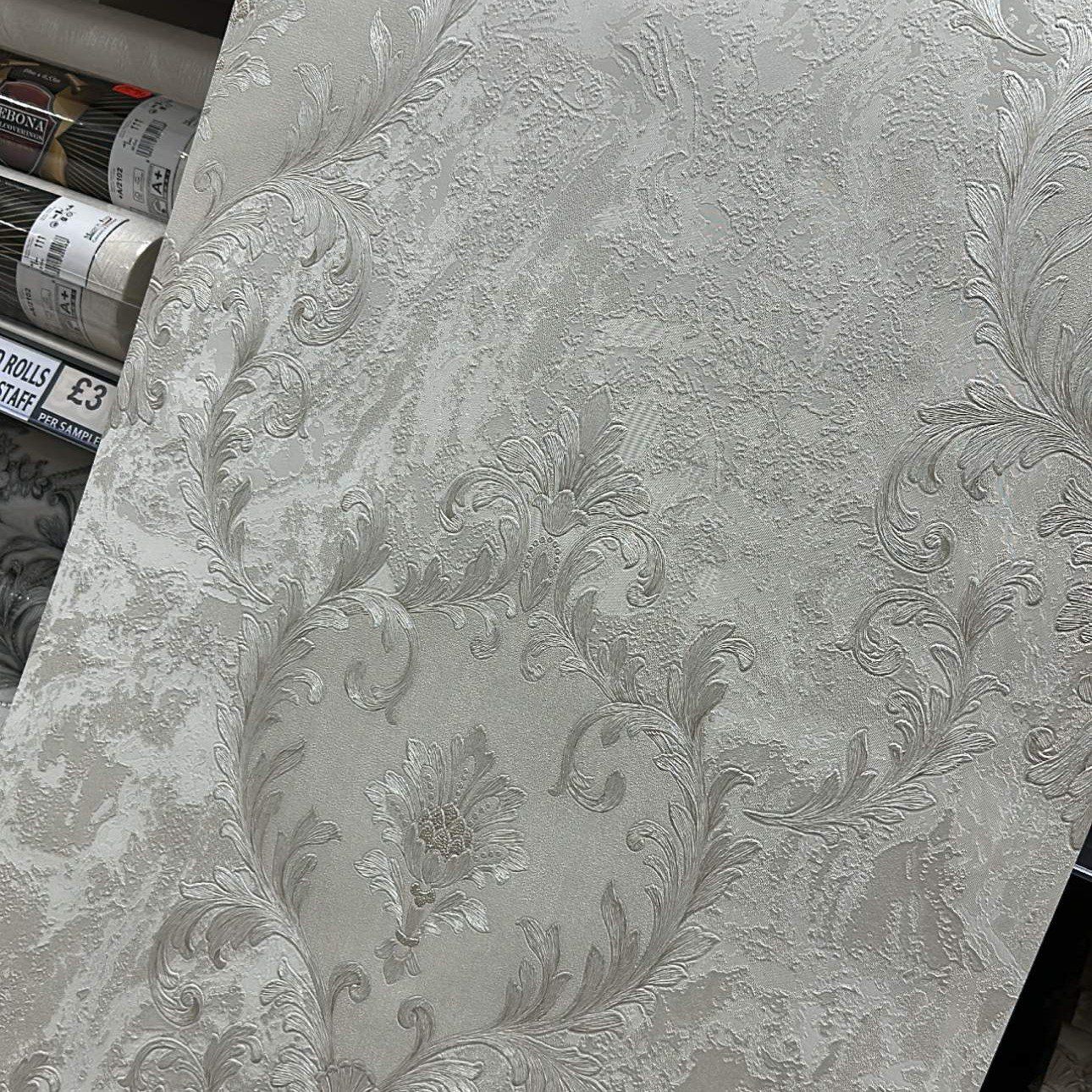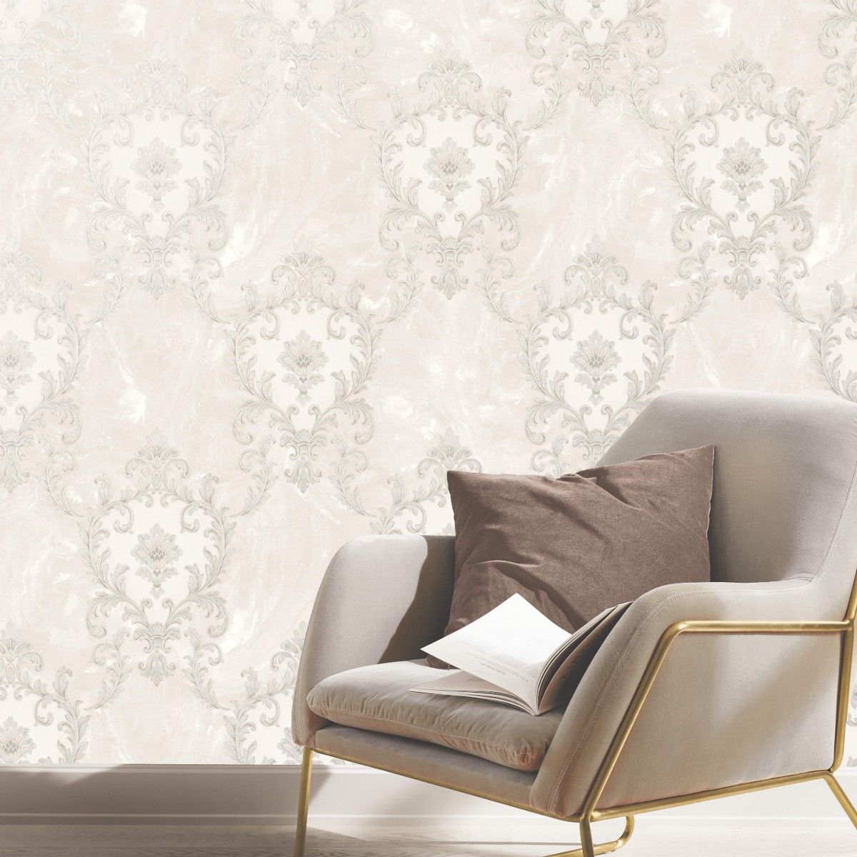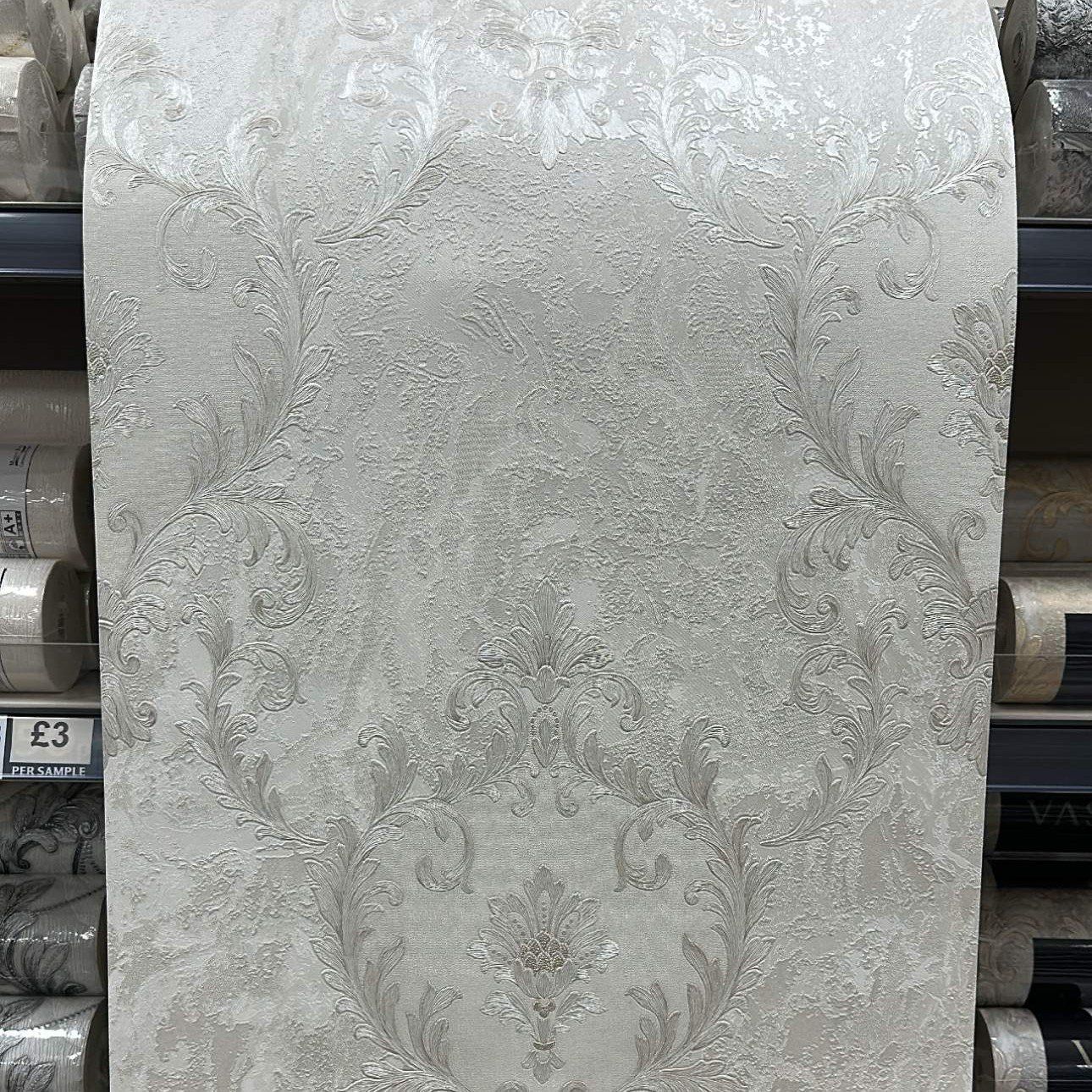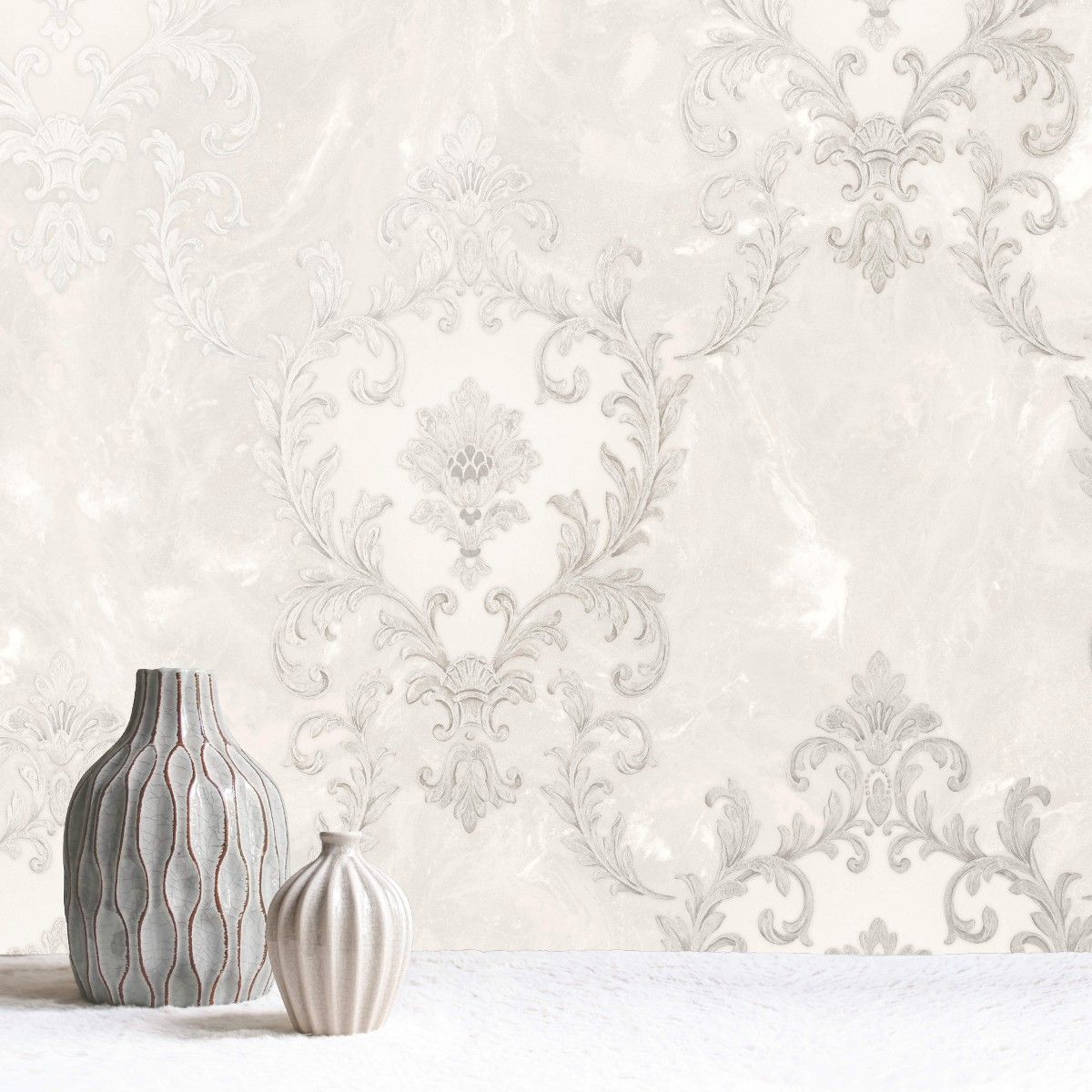 Sienna Damask Pearl Vasari Italian Luxury Vinyl Wallpaper 534375