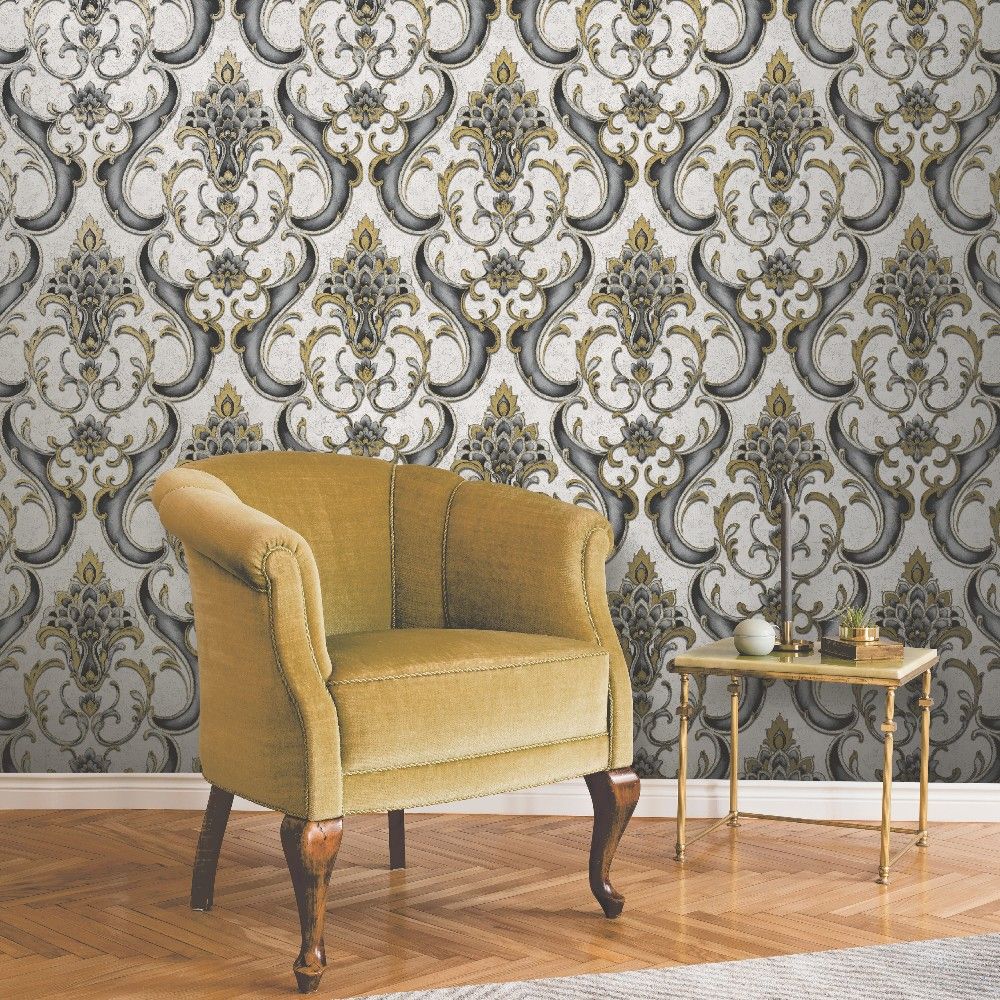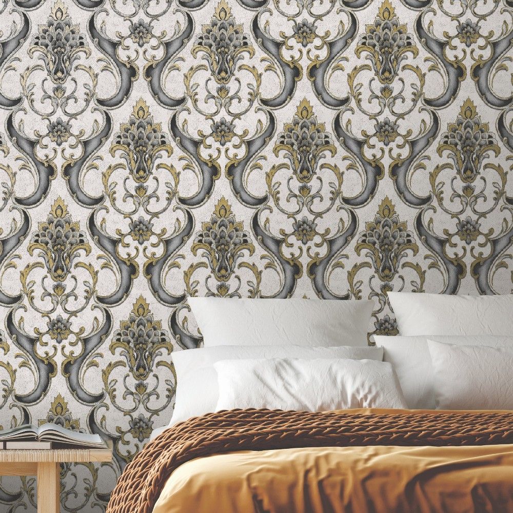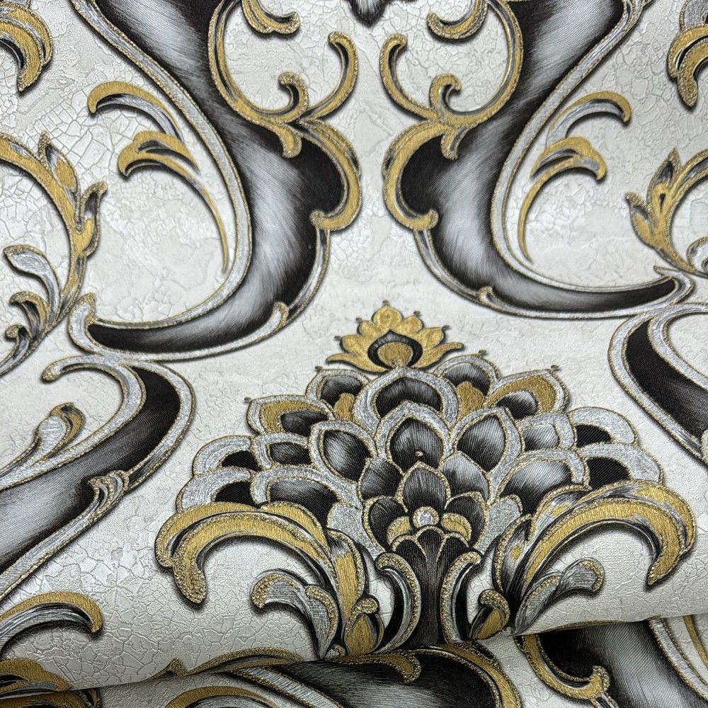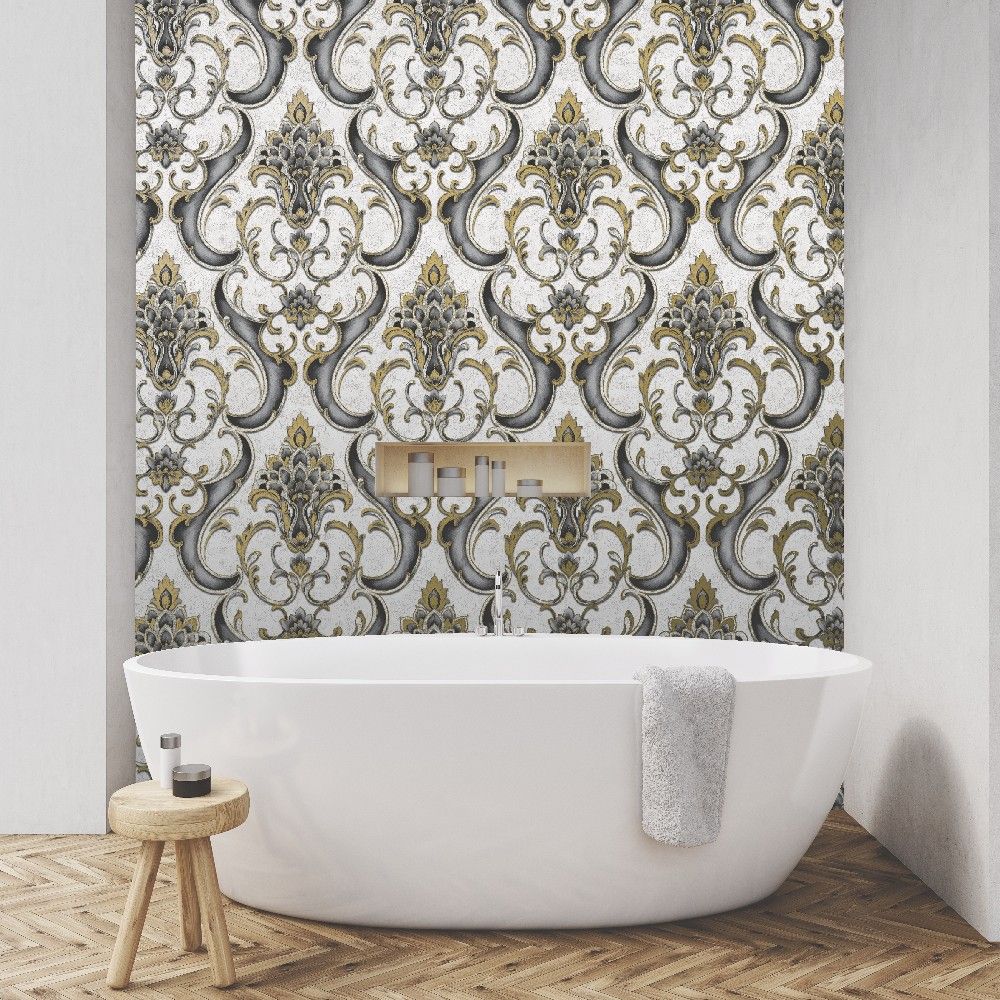 Calculate QuantityThe Sonta Damask wallpaper by Vasari is an exquisite choice, featuring a bold Russian-style damask pattern set against a beautifully crackled marble stone background. The black & gold metallic damask design elegantly contrasts with the cream neutral backdrop, creating a luxurious and timeless aesthetic. Crafted from heavyweight vinyl, this wallpaper ensures exceptional quality and durability. Available in various colours to suit different tastes, we recommend ordering a sample to appreciate the true colour and texture firsthand.