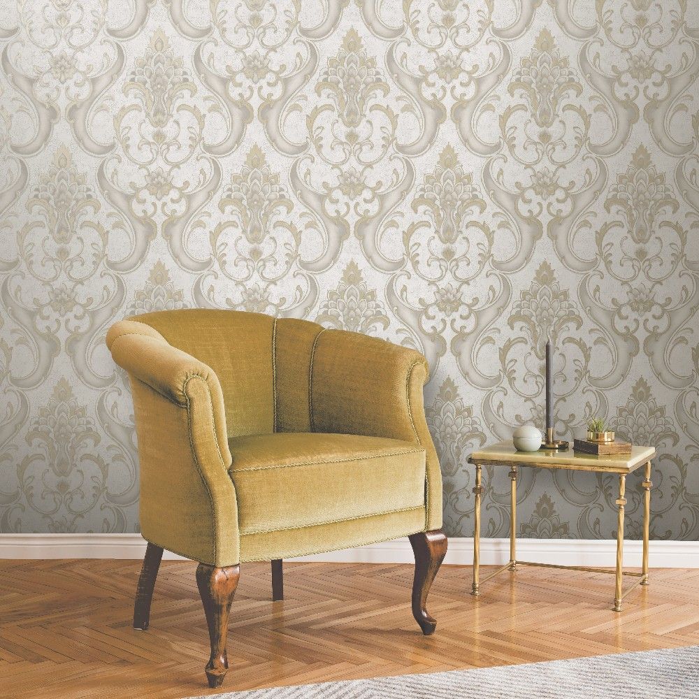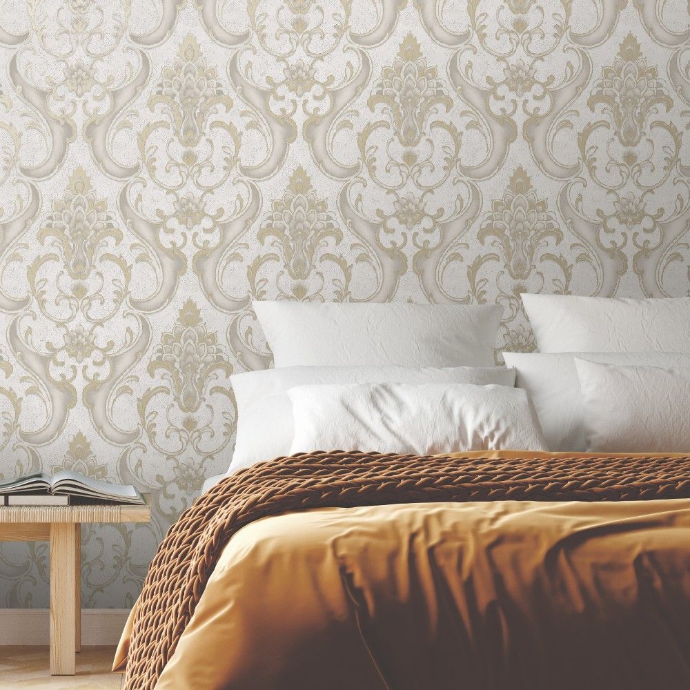 Sonta Damask Gold & Cream Italian Vinyl Wallpaper by Vasari 539769