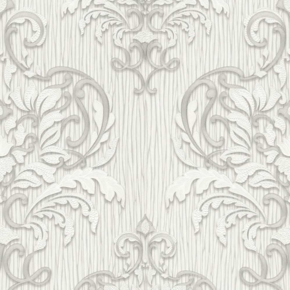 Spotlight Damask White & Grey Vinyl Wallpaper 10102-31