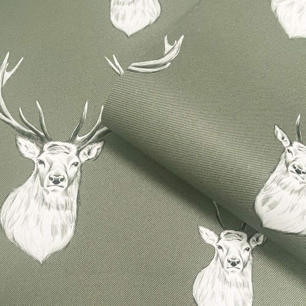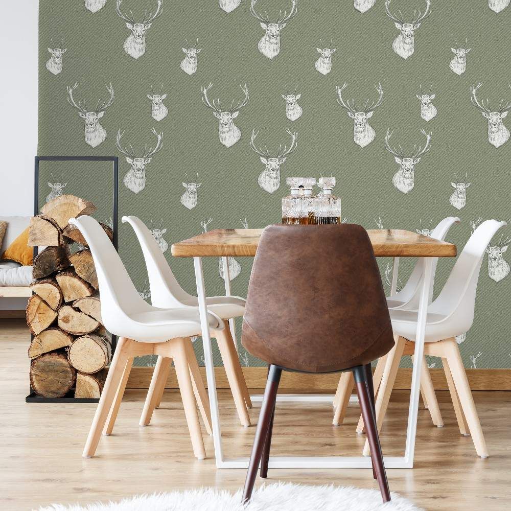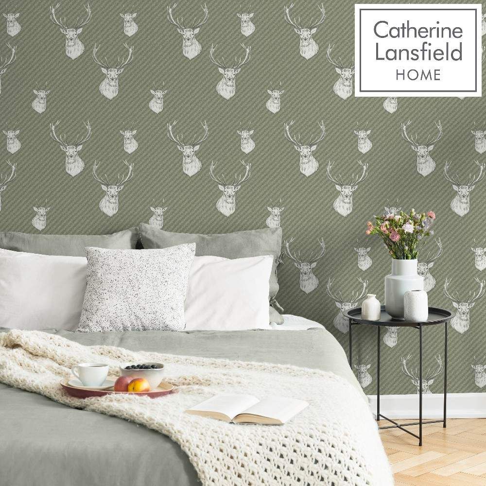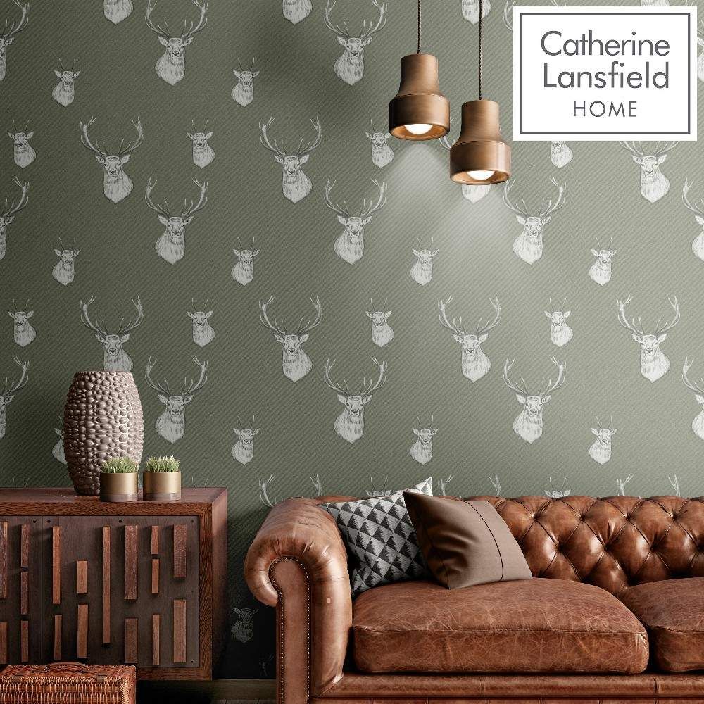 Stag Head Deer Sage Green Animal Woodland Wallpaper by Catherine Lansfield 165515