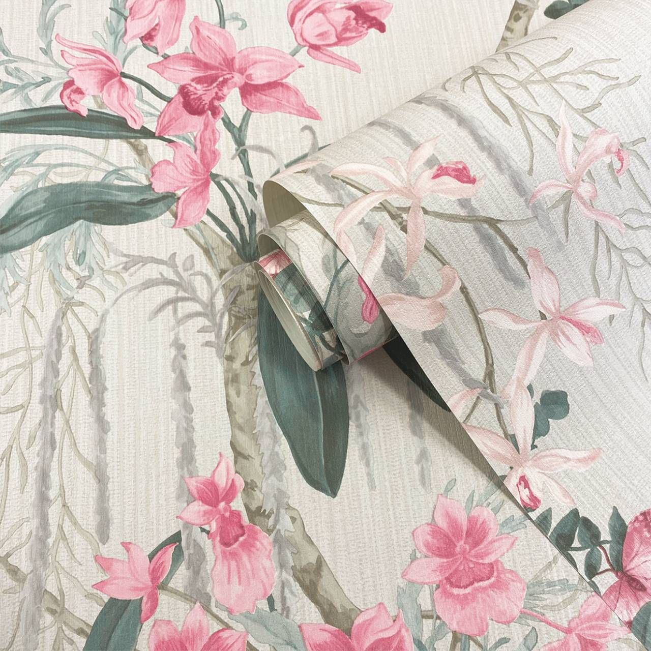 Suki Exotic Trailing Orchid Pink Sage & Cream Wallpaper 2163