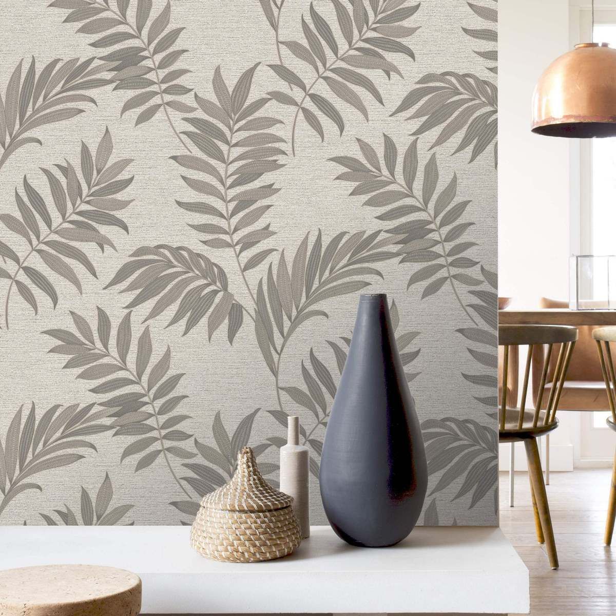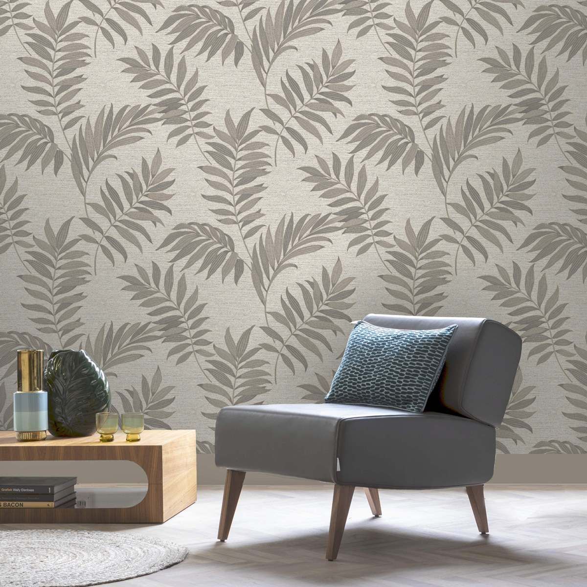 Sumatra Palm Leaves Taupe Floral Wallpaper 316414