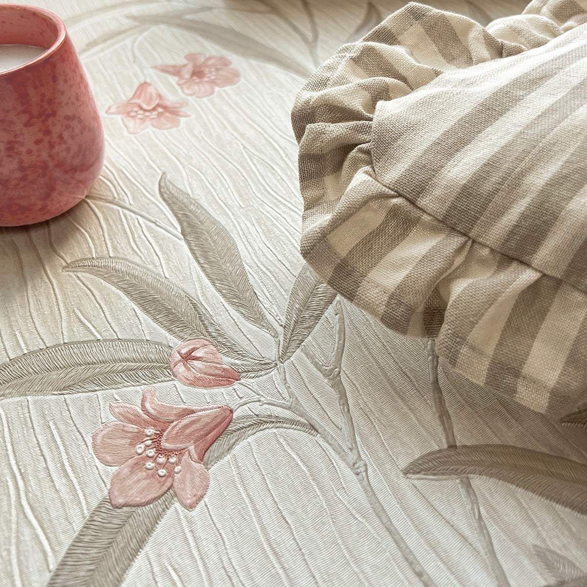 Tiffany Floral Cream & Soft Terra Red Luxury Italian Vinyl Wallpaper 41332