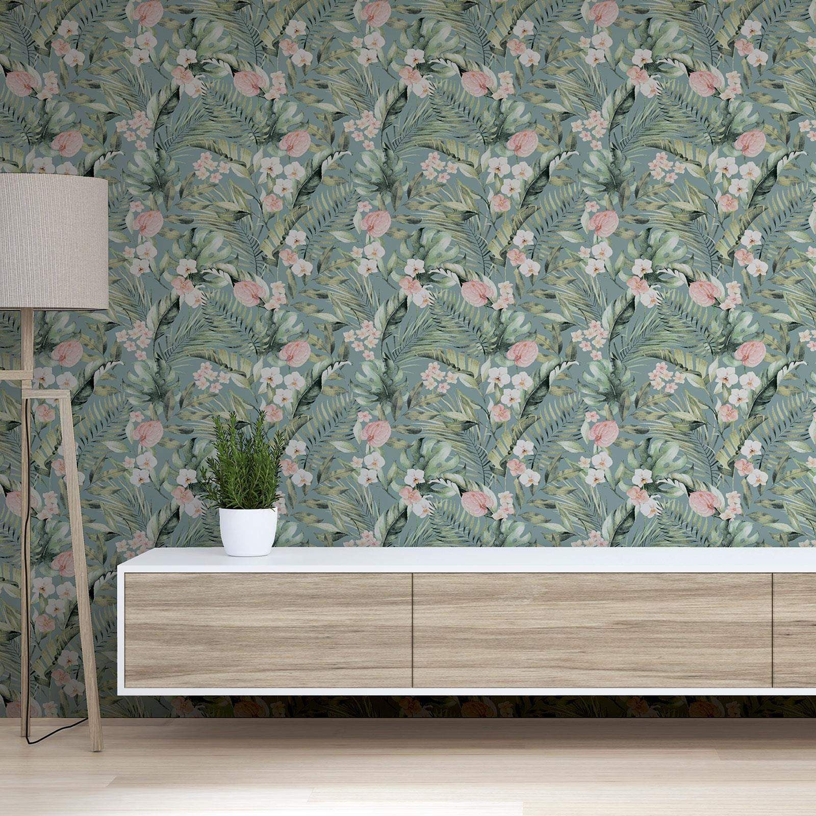 Tropical Floral Sea Blue & Blush Wallpaper 924905