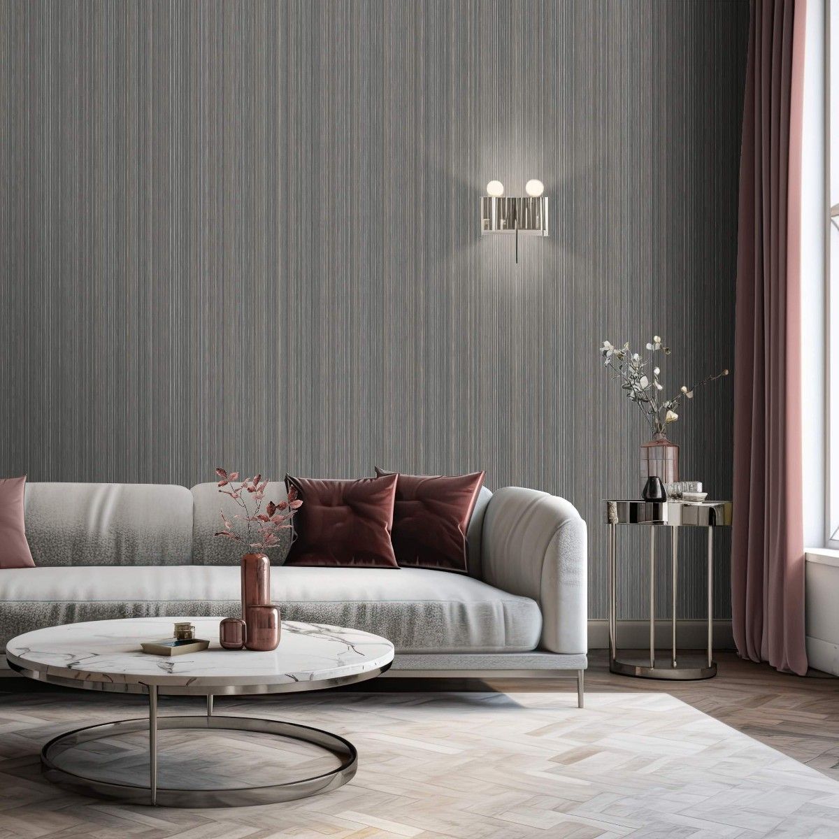 Venezia Stripe Grey Lavish Shimmer Vinyl Wallpaper M66519