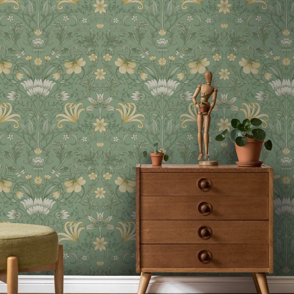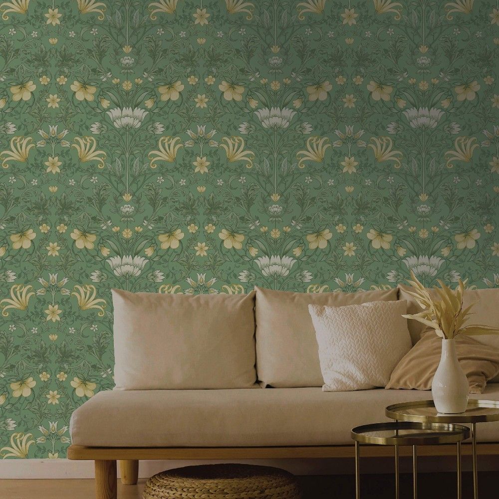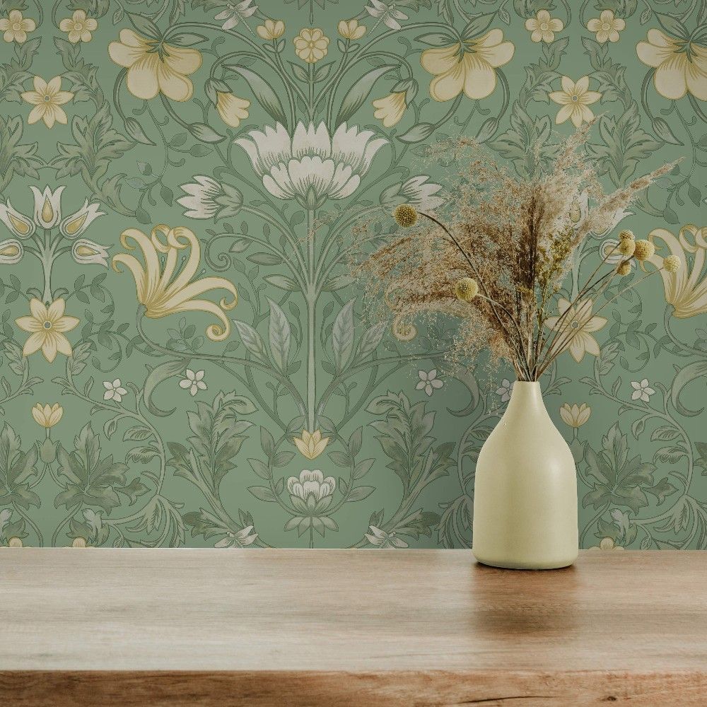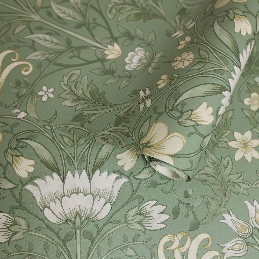 Vintage Floral Green William Morris Style Wallpaper 13550