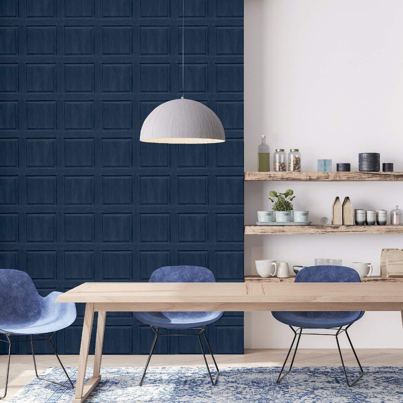 Calculate QuantityElevate your home's elegance with this decorative panelling wallpaper, offering a classic and sophisticated appearance. The faux panelling design incorporates visible wood grain, enhancing its overall effect, and the navy blue color is a trendy choice. Ideal for feature walls or entire rooms, this wallpaper is suitable for most spaces, except high-moisture environments.