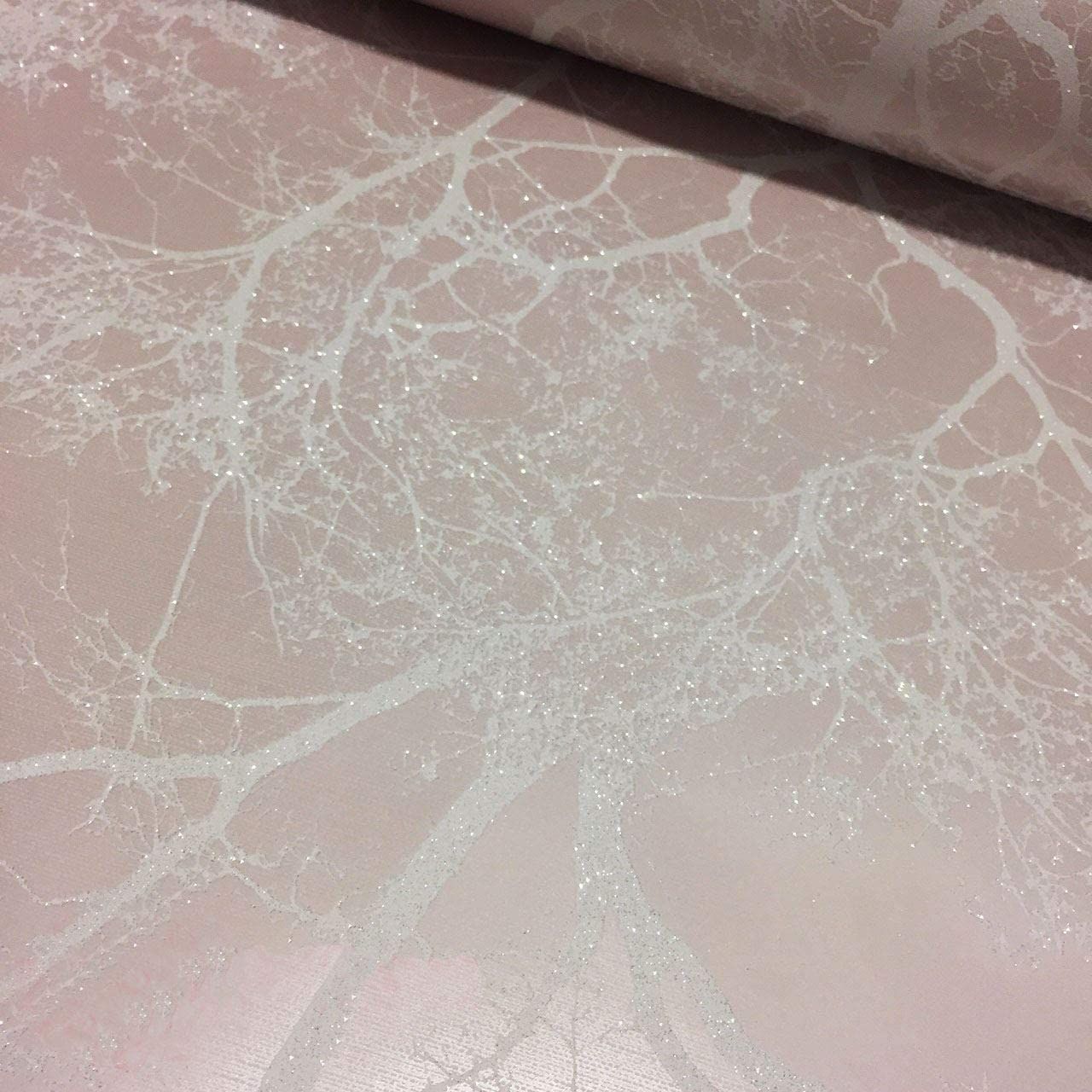 This natural tree print creates an all over textured look, with a raised motif and a shimmering mica textile print in the background.