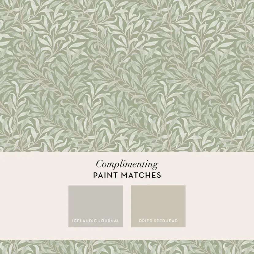 Willow Bough Sage Block Printed Diagonal Branch Wallpaper by William Morris 124248