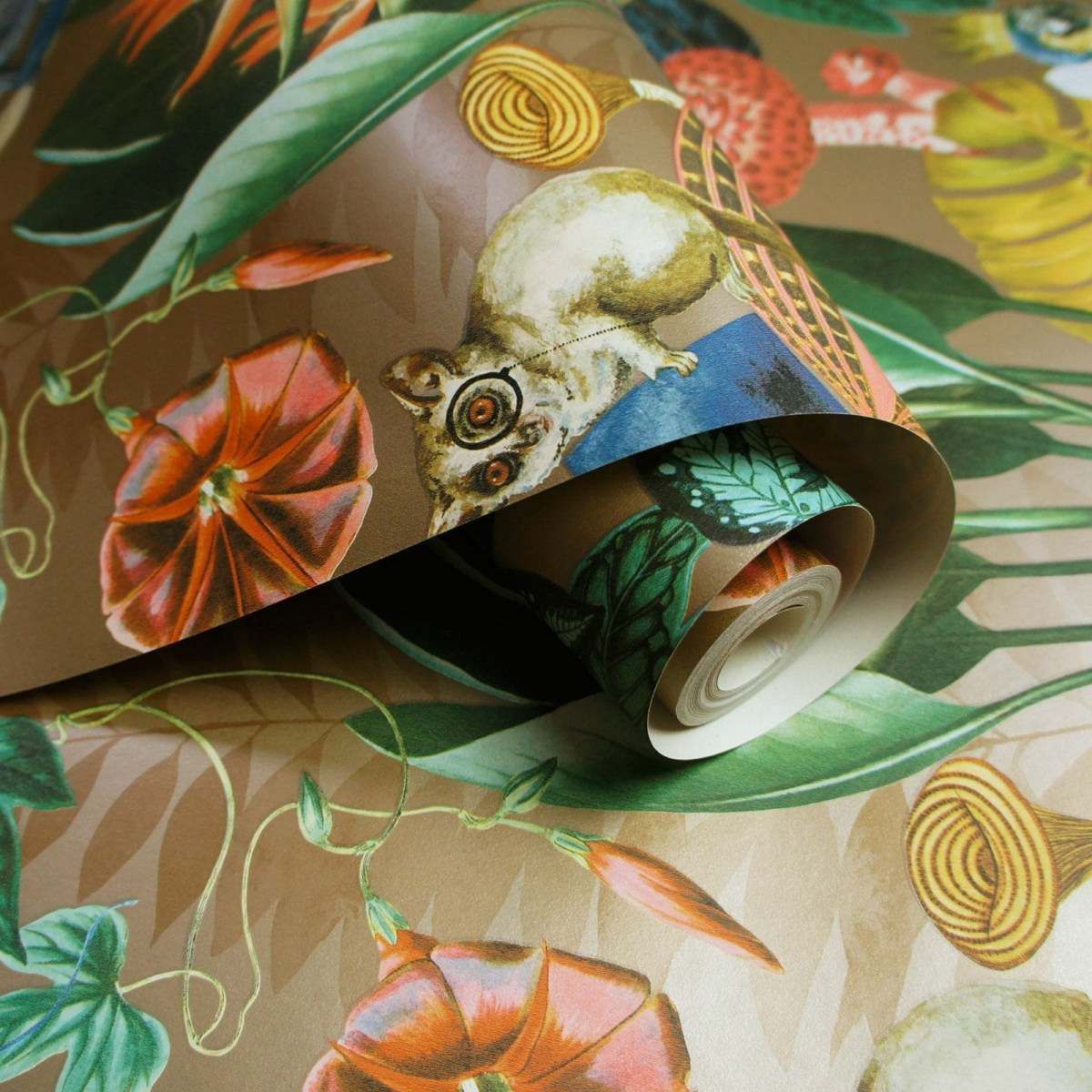 Wonderland Tropical Gold Conversational Animal Wallpaper 91191