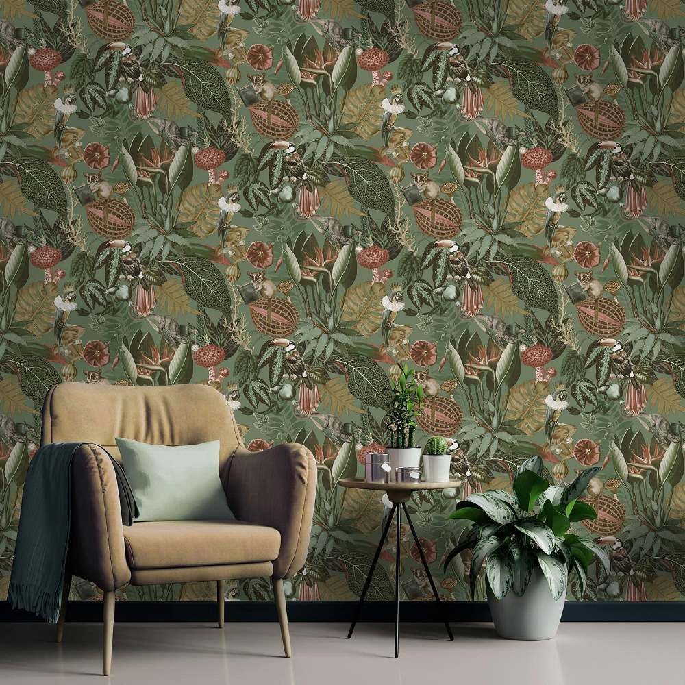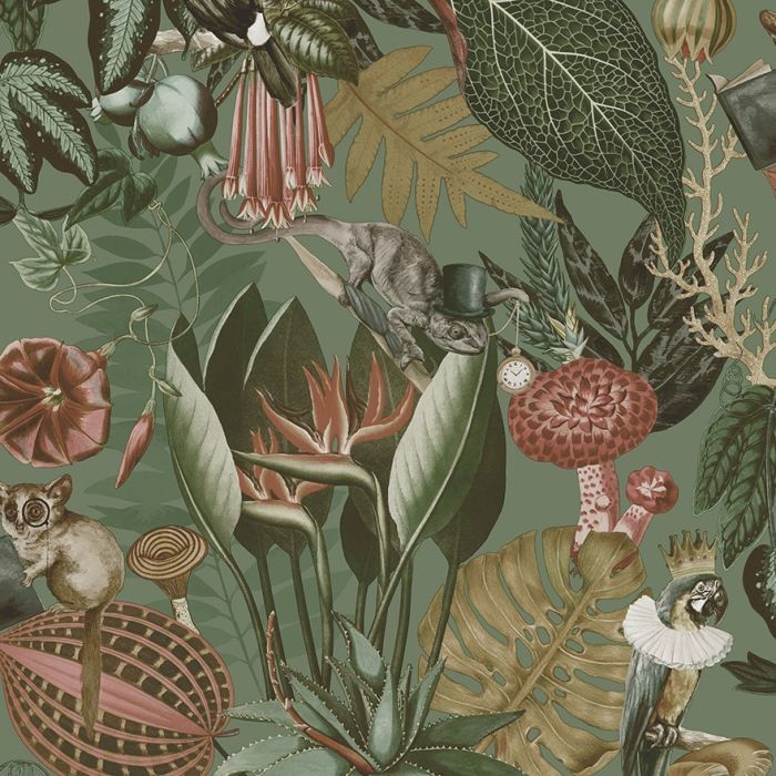 Wonderland Tropical Sage Conversational Animal Wallpaper 13401