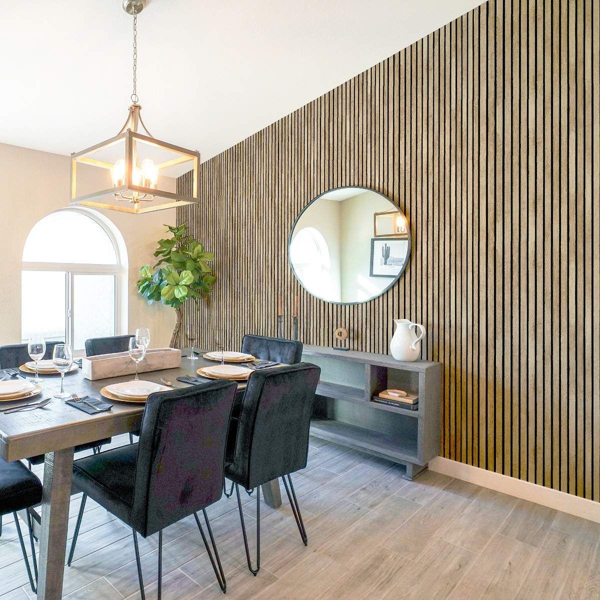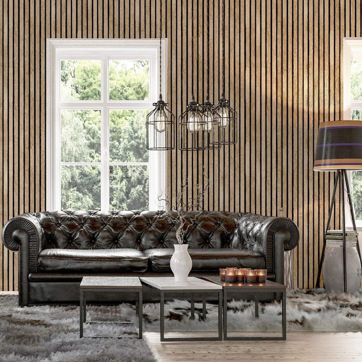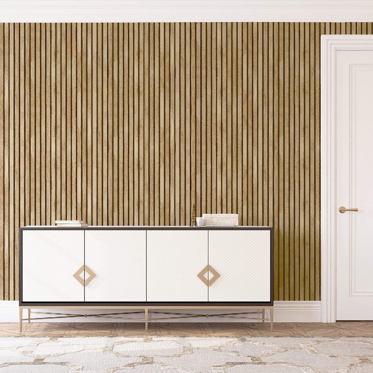 Calculate QuantityCreate a stylish and contemporary look with this affordable modern wood slat design wallpaper, without damaging your walls. The realistic photographic wood slat design on a dark background brings a touch of nature into your home. Suitable for a feature wall or whole room, this wallpaper is easy to apply and of high quality.